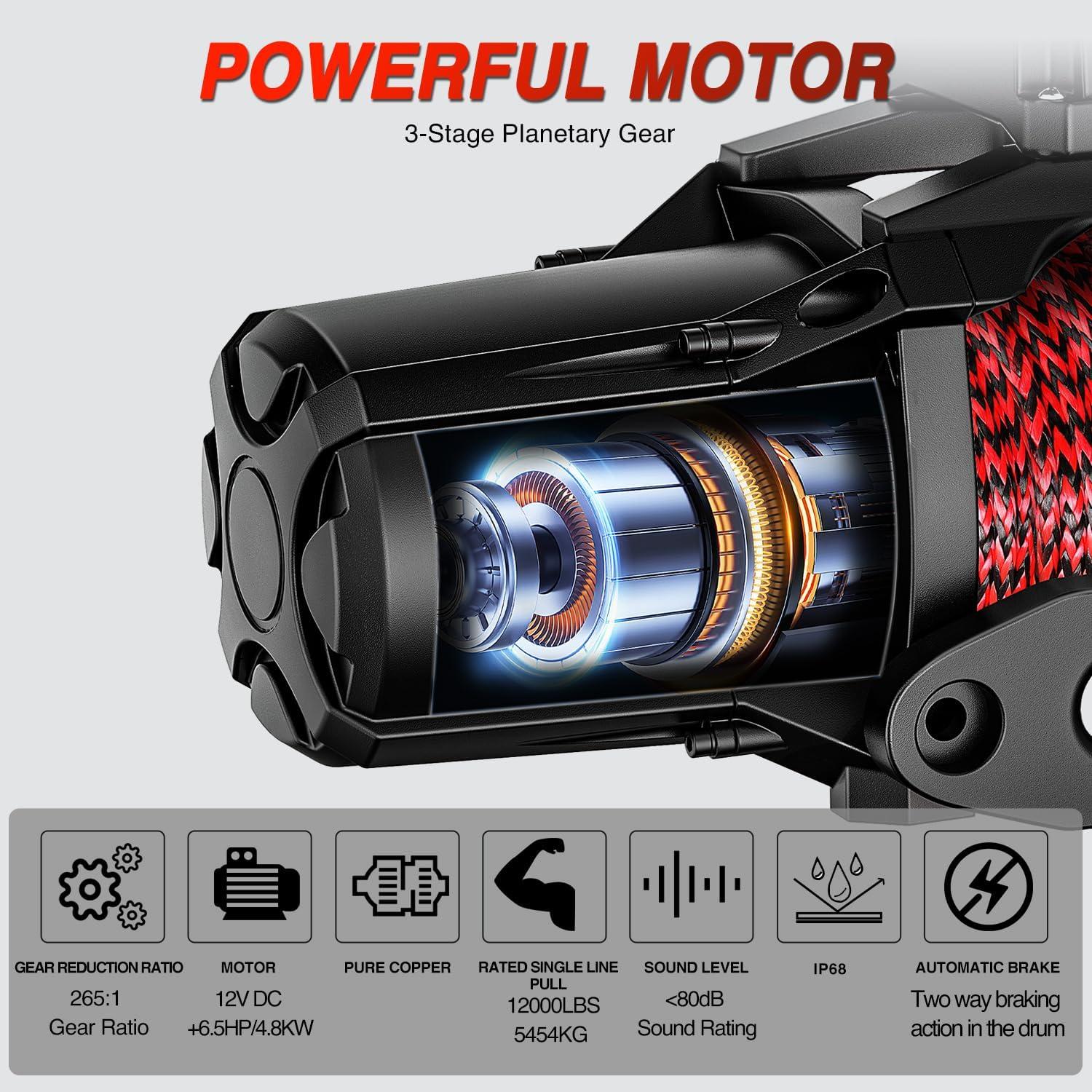 Nilight 12000lbs Electric Winch 12V Waterproof IP68 for Trailer Jeep ATV UTV Truck SUV Towing Portable Winches with Synthetic Rope 3-IN-1 Smart Remote(12000 lbs w 3-in-1 remote)