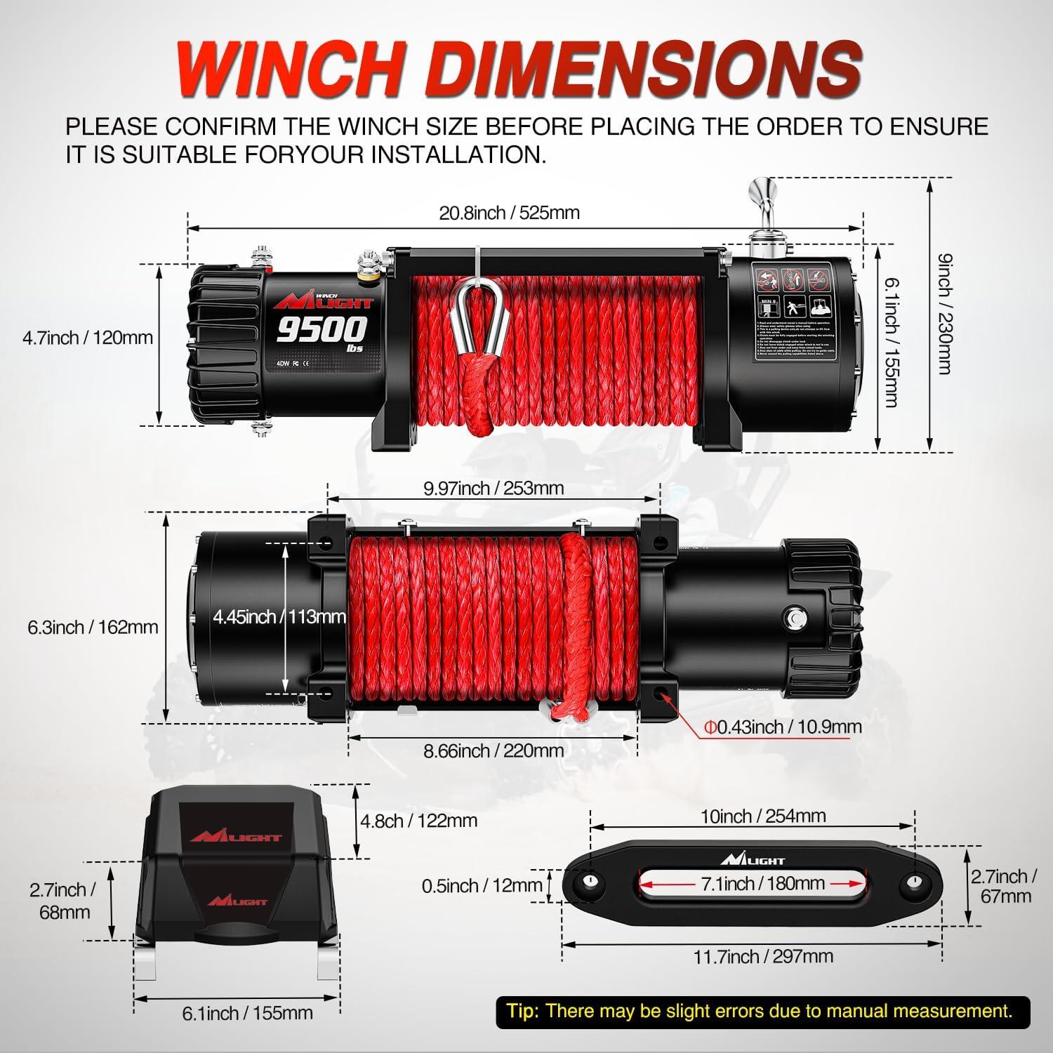 Nilight ATV UTV Electric Winch 12V 4500 lb Winches for Towing Trailer Truck Jeep Off Road Portable Waterproof IP67 Winch with Synthetic Rope Wireless & Wired Remote Control Hawse Fairlead Mount Plate(12V 9500 lbs)