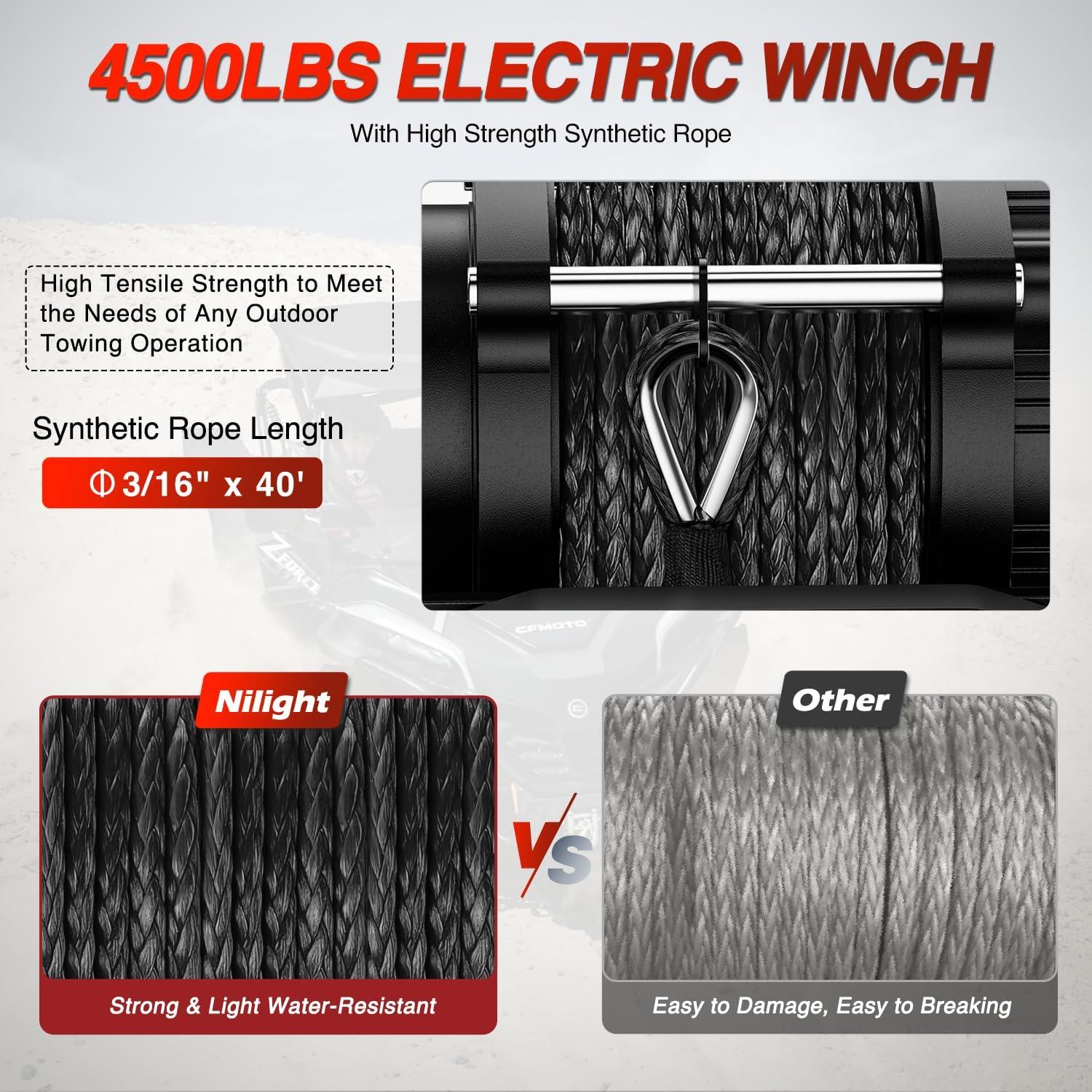 Nilight 12000lbs Electric Winch 12V Waterproof IP68 for Trailer Jeep ATV UTV Truck SUV Towing Portable Winches with Synthetic Rope 3-IN-1 Smart Remote(12V 4500 lbs)