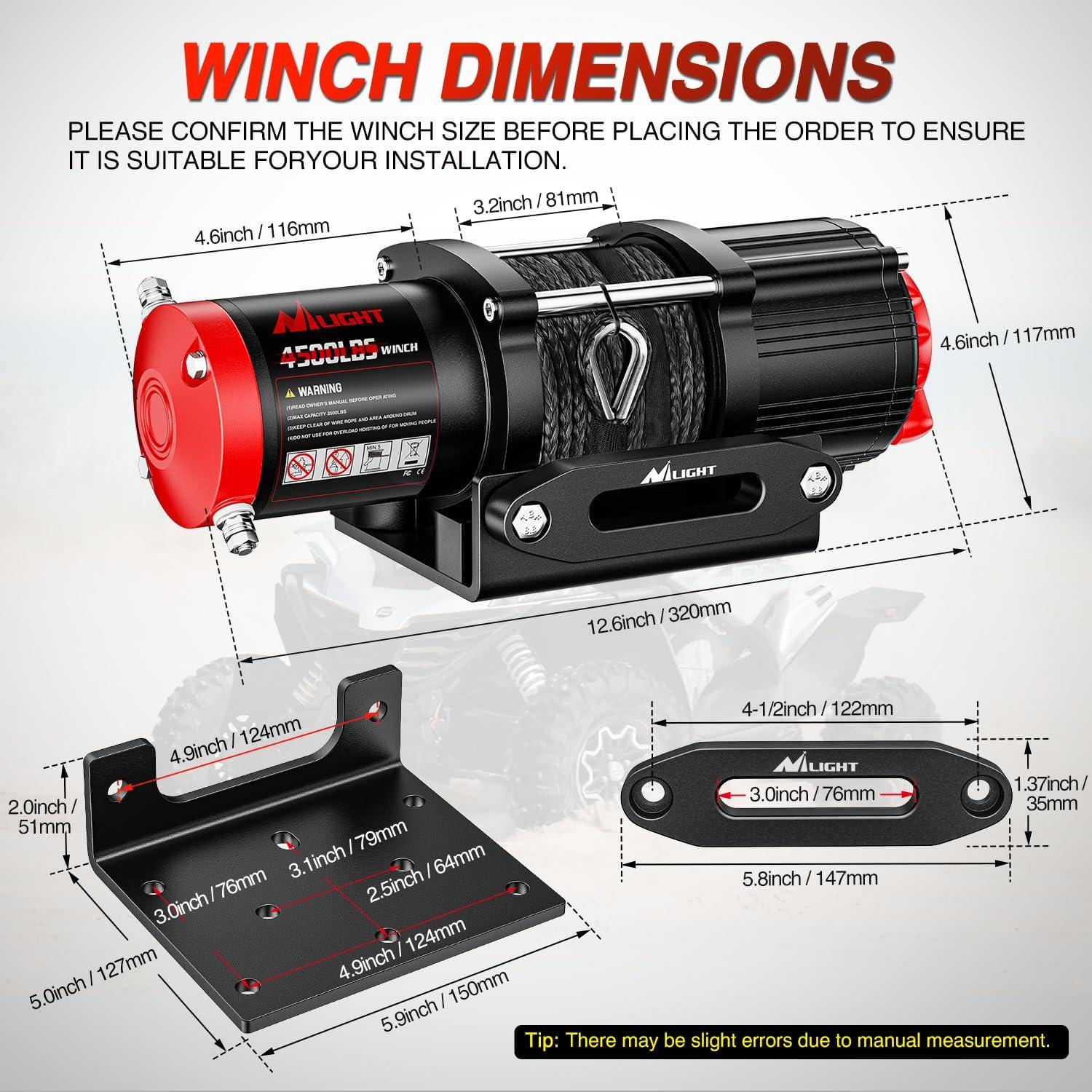 Nilight ATV UTV Electric Winch 12V 4500 lb Winches for Towing Trailer Truck Jeep Off Road Portable Waterproof IP67 Winch with Synthetic Rope Wireless & Wired Remote Control Hawse Fairlead Mount Plate(12000 lbs w 3-in-1 remote)