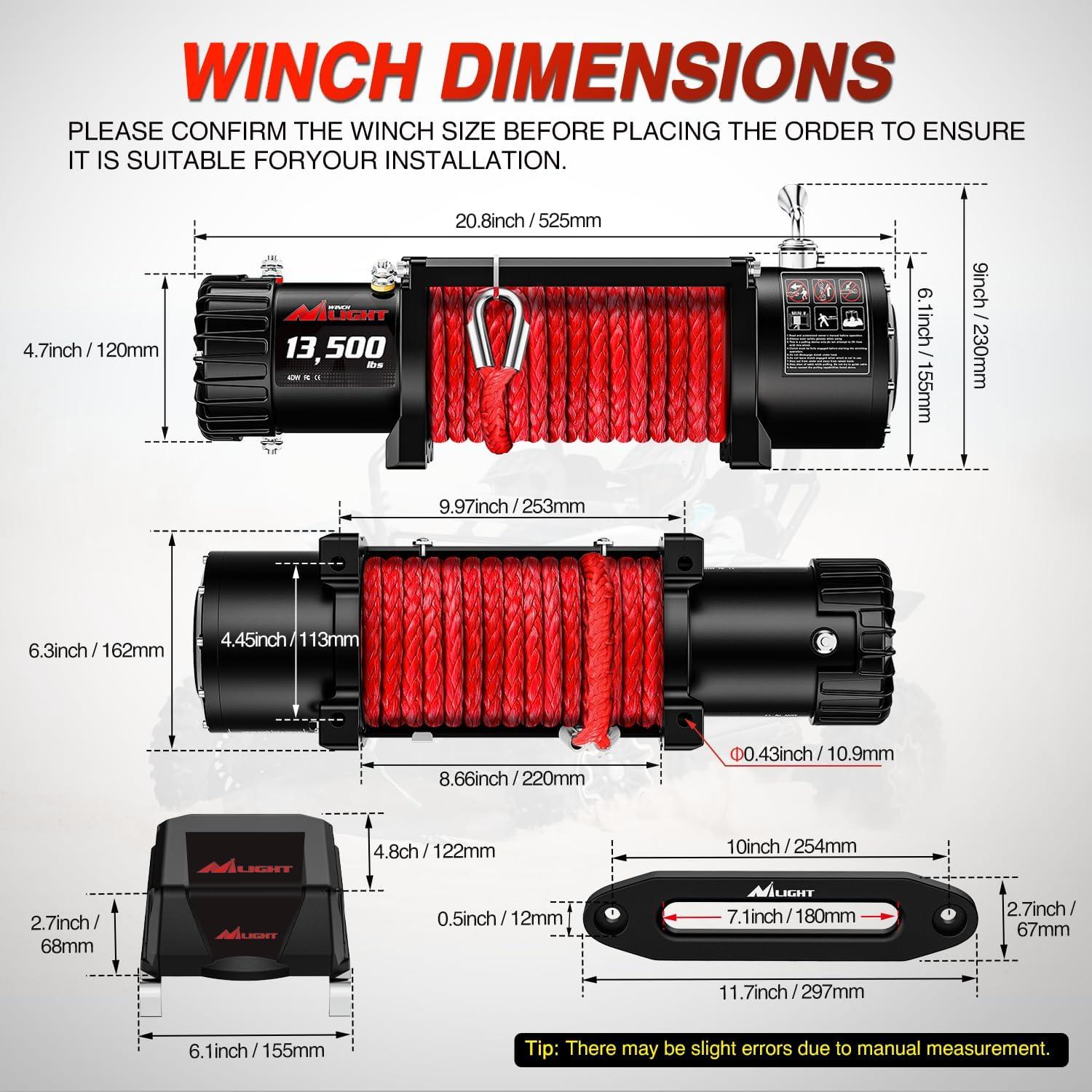 Nilight ATV UTV Electric Winch 12V 4500 lb Winches for Towing Trailer Truck Jeep Off Road Portable Waterproof IP67 Winch with Synthetic Rope Wireless & Wired Remote Control Hawse Fairlead Mount Plate(12V 13500 lbs)