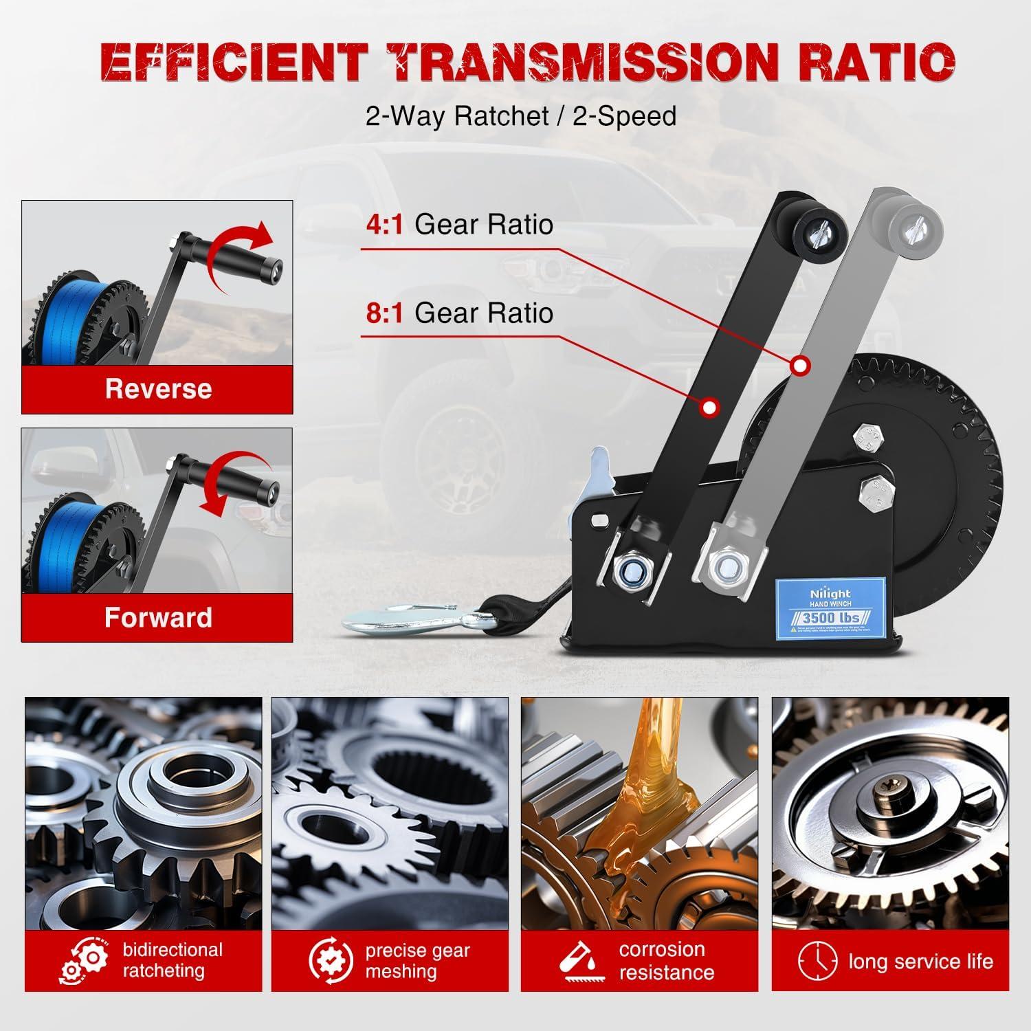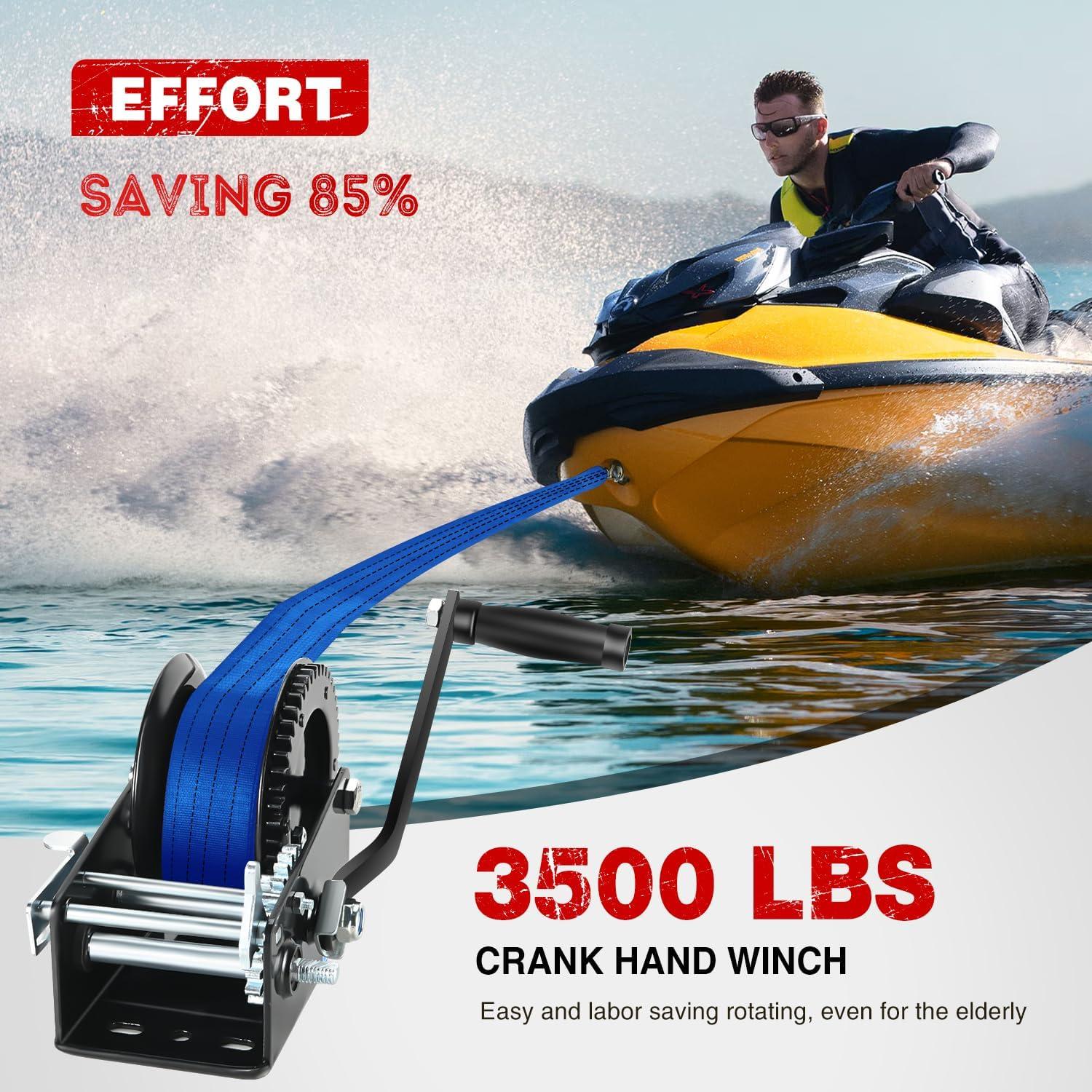 Nilight Boat Trailer Winch 3500 LBS Hand Crank Winch Heavy Duty Boat Winches with 33 FT Orange Strap Rope Hook Two Way Ratchet 4:1 8:1 Gear Portable Marine Manual Winch for Trailers Boat RV ATV Towing(Black)