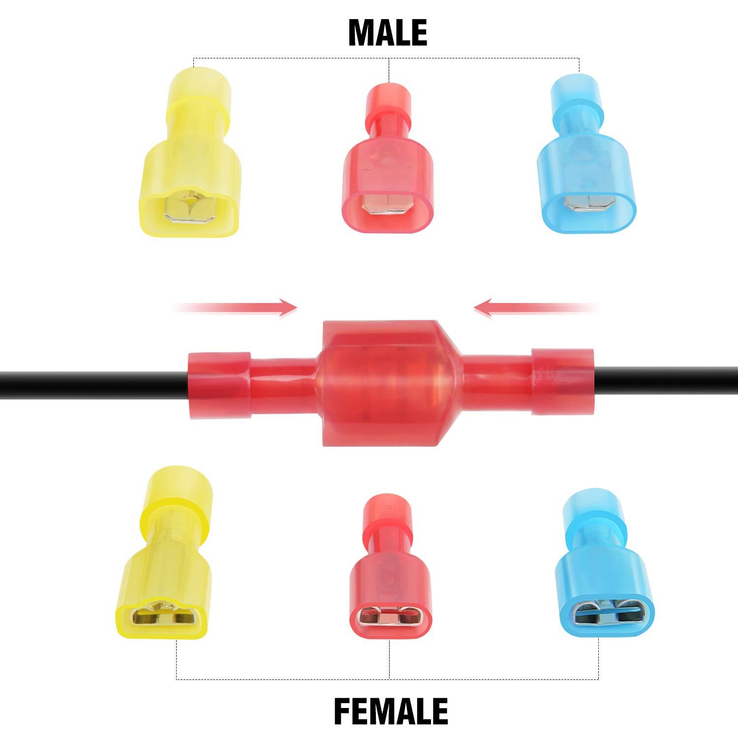 Nilight 480PCS/80 Pairs T-Tap Wire Connectors Self-Stripping Quick Splice Electrical Wire Terminals Insulated Male Quick Disconnect Spade Terminals Assortment Kit with Storage Case, 2 Years Warranty(120 Pcs)