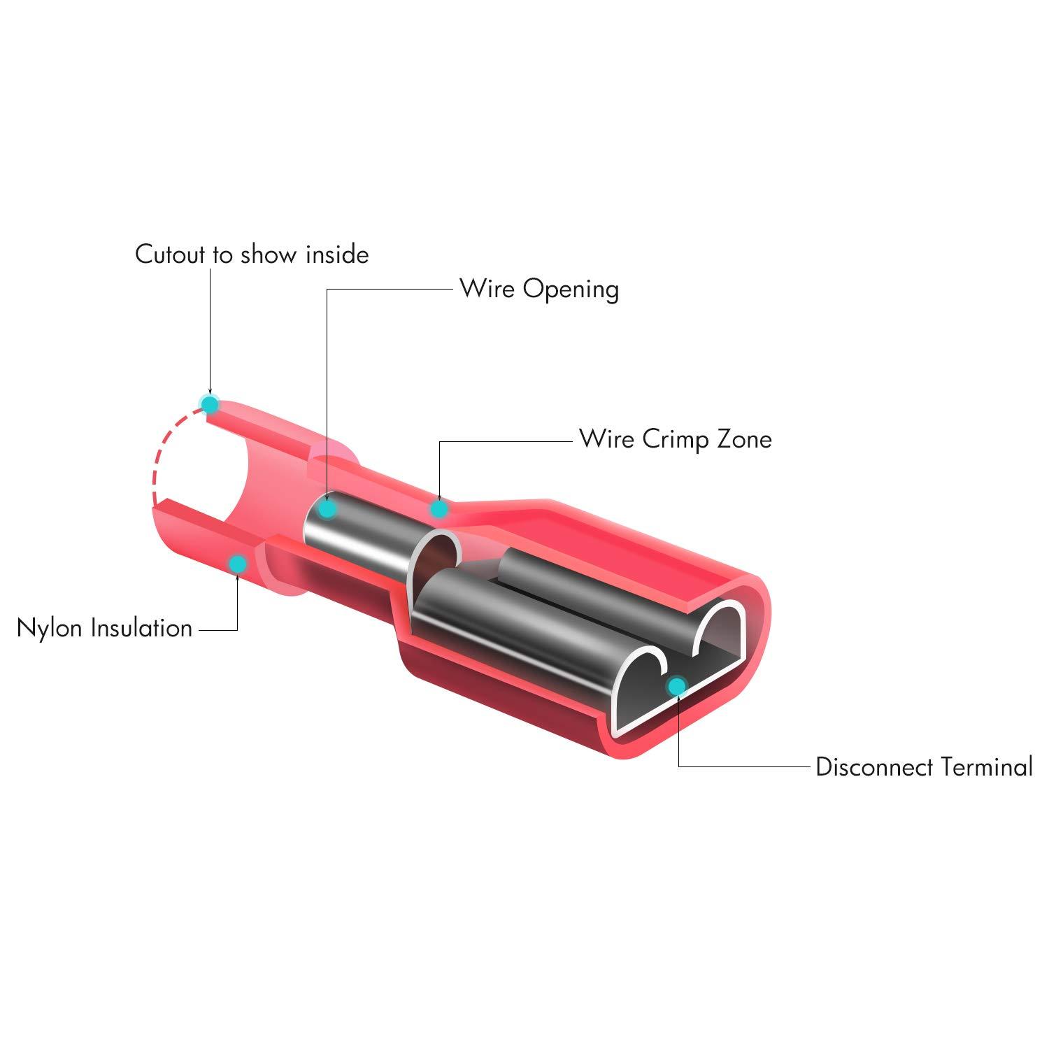 Nilight 400 Pcs Spade Terminals Nylon Quick Disconnect Male and Female Connectors Electrical Insulated Wire Crimp Assortment Kit(200PCS Spade Terminal)