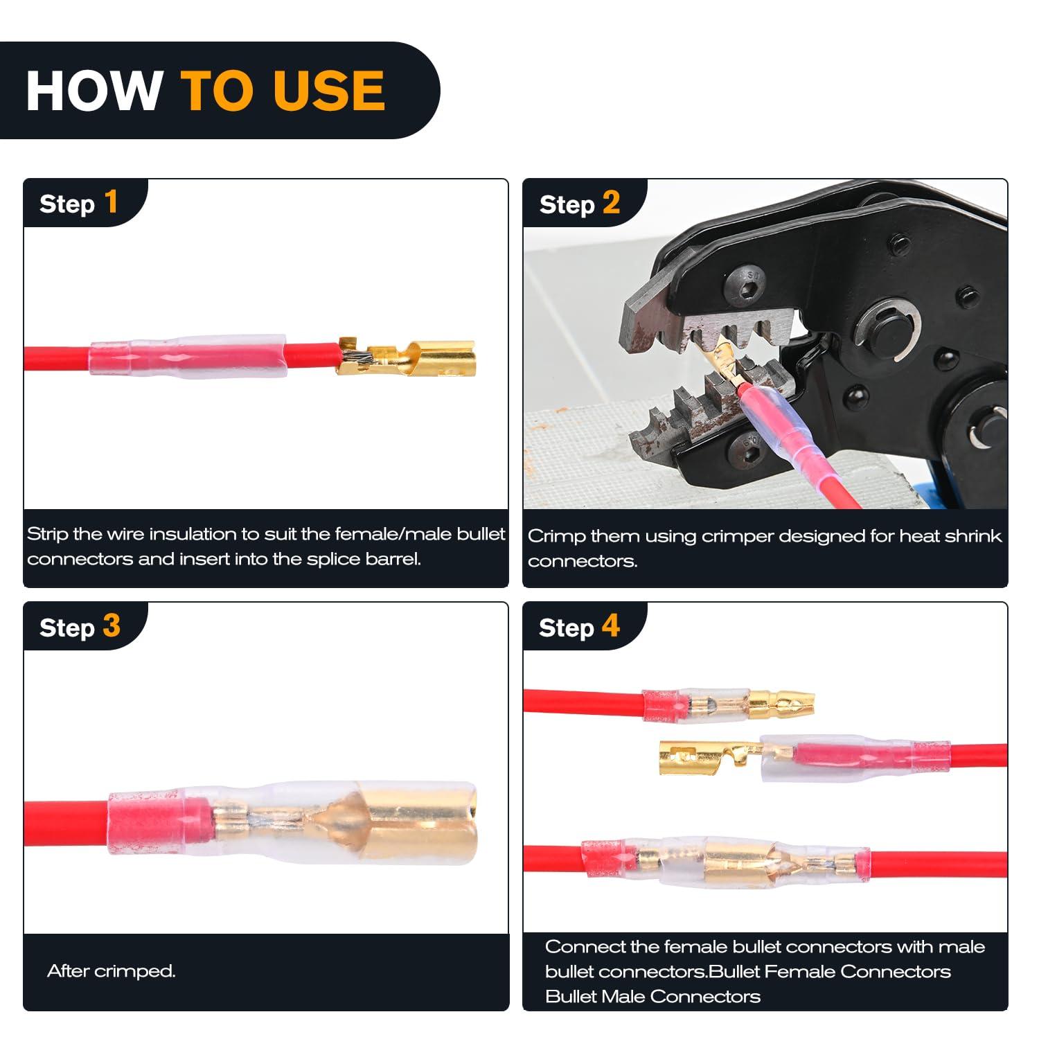 Nilight 400 Pcs Spade Terminals Nylon Quick Disconnect Male and Female Connectors Electrical Insulated Wire Crimp Assortment Kit(400PCS Bullet Connectors)