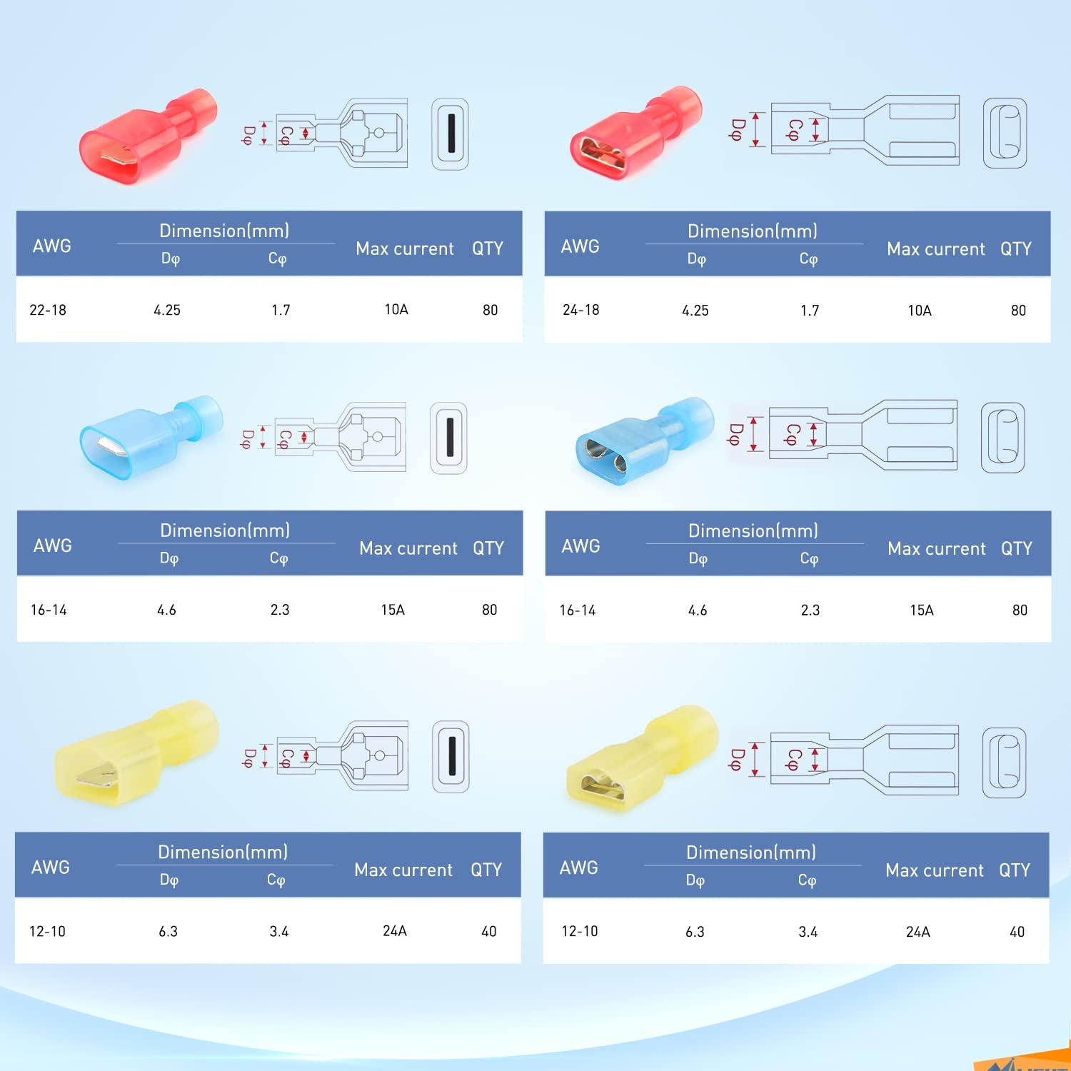 Nilight 400 Pcs Spade Terminals Nylon Quick Disconnect Male and Female Connectors Electrical Insulated Wire Crimp Assortment Kit(160PCS Crimp Terminals Connectors)