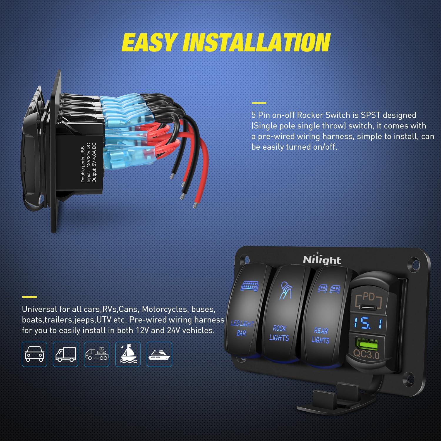 Nilight – 50036R Closed End Crimp Terminal 300 pcs 22-16/16-14/12-10 Gauge Nylon Wire Connector Kit,2 Years Warranty(115Pcs Lever Wire Connectors)