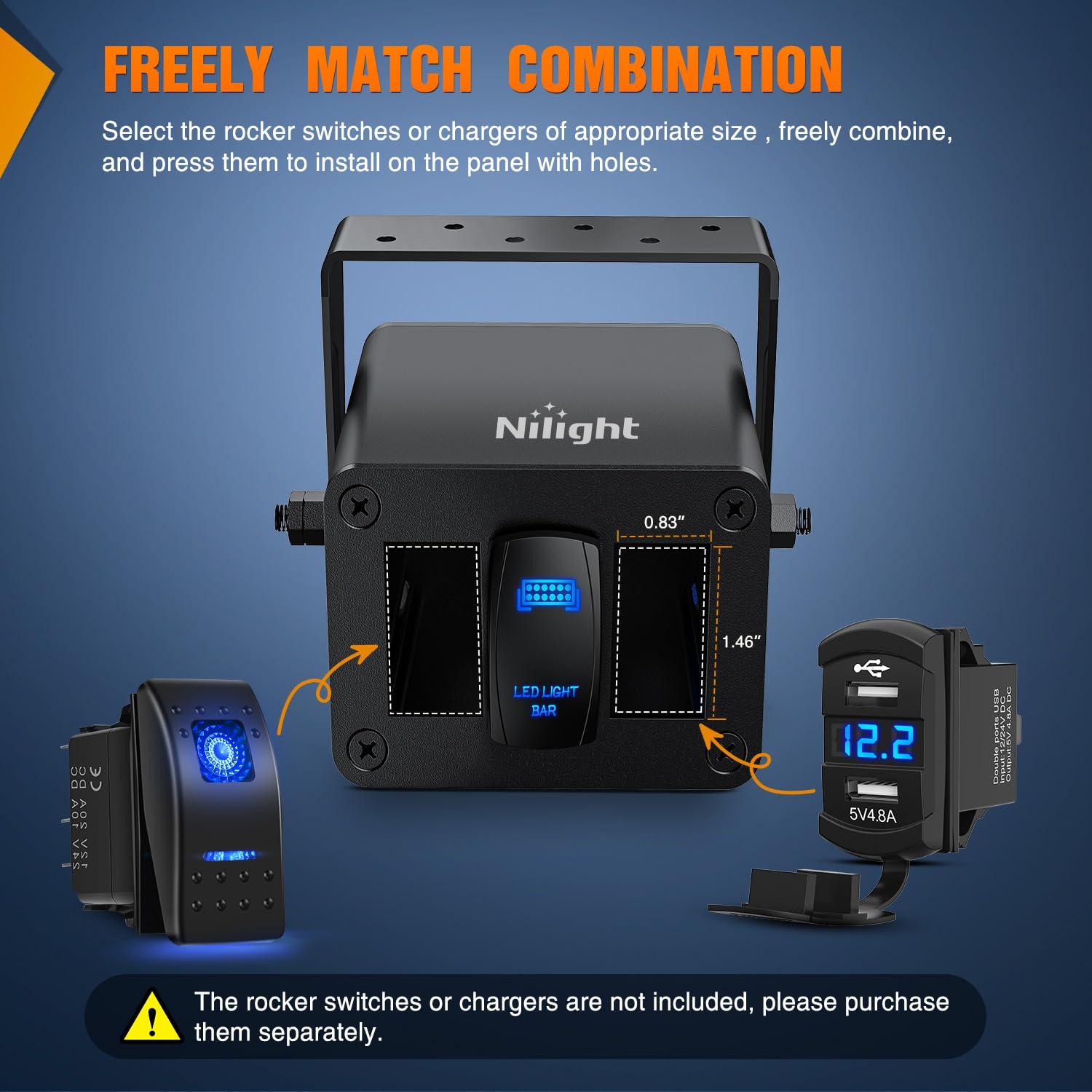 Nilight – 90109D 4 Gang Aluminum Rocker Switch Panel Toggle Dash 5 Pin ON/Off Pre-Wired Rocker Switch Blue Backlit Switch for Automotive Car Marine Boat RV,2 Years Warranty(Black-Switch Box Only)