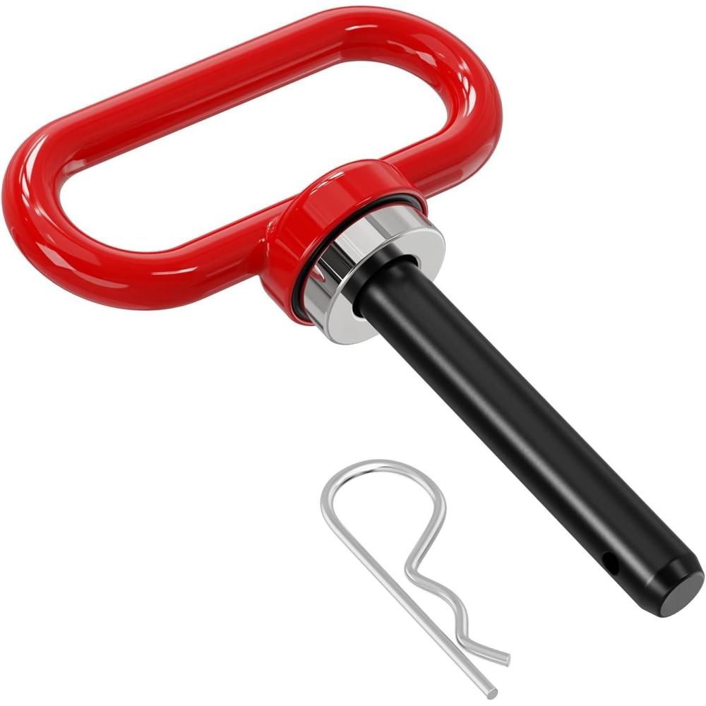 EASE OF USE – The extra-wide comfort grip allows tow hitch pin to be installed and removed with one hand.Simply insert the pin and secure it with the included clevis R clip.Comfortable to hold, and easy to grip.With its vibrant coating, it is easy to spot and hard to lose