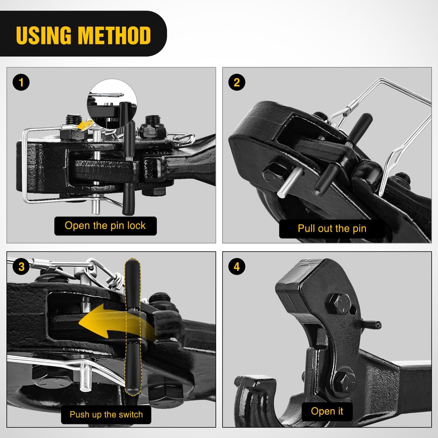【DURABLE MATERIAL】-The Winch Snatch Block is made in solid forged steel, the surface treatment adopts e-coat finish + powdered coat protection, which maximizes the durability of the Winch Snatch Block and prevents rust and corrosion.