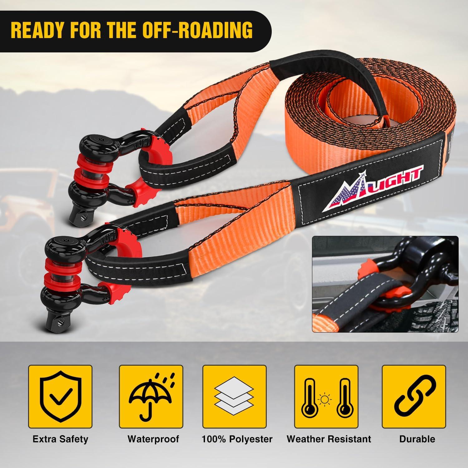【OFF-ROAD VERSATILITY】-Works with metal D-ring shackles of soft synthetic shackles.Effortlessly recover any stuck vehicle by changing the direction of your pull; perfect for navigating around trees or other obstacles and getting your ATV, UTV or 4×4 back on the trail