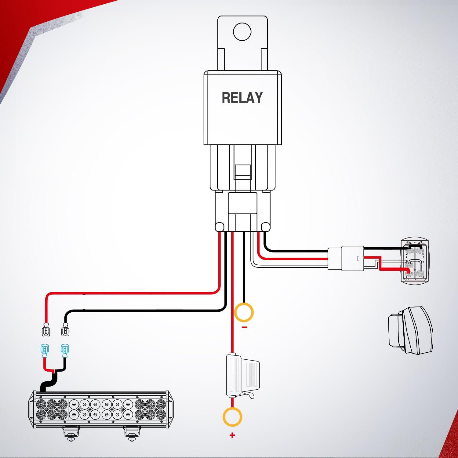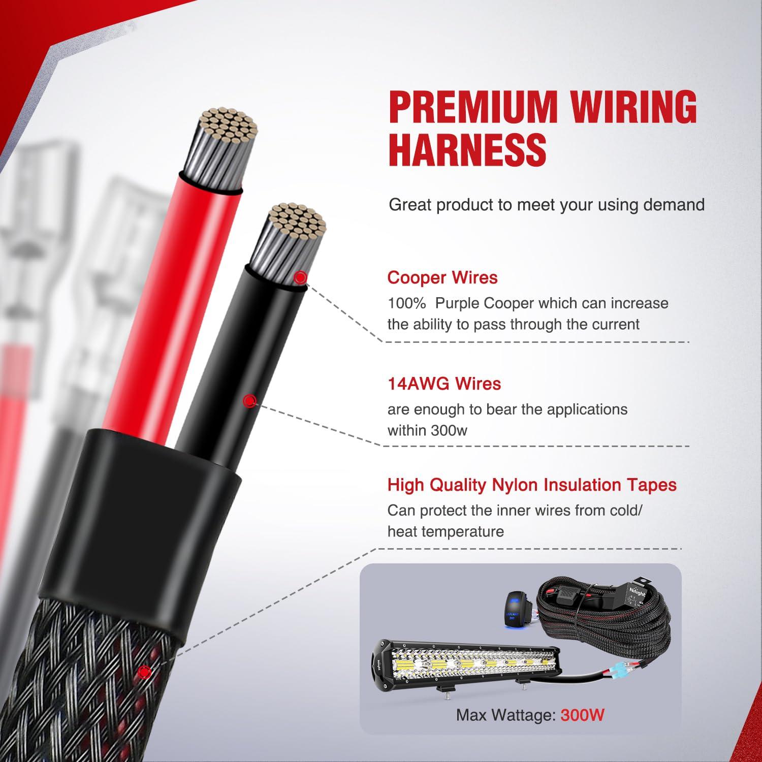 Nilight 10014W LED Light Bar Wiring Harness Kit 14AWG Heavy Duty 12V 5Pin Rocker Laser On Off Waterproof Switch Power Relay Blade Fuse-1 Lead, 2 Years Warranty(14AWG Wiring Harness -1 Lead w/ Nylon Wire Loom)
