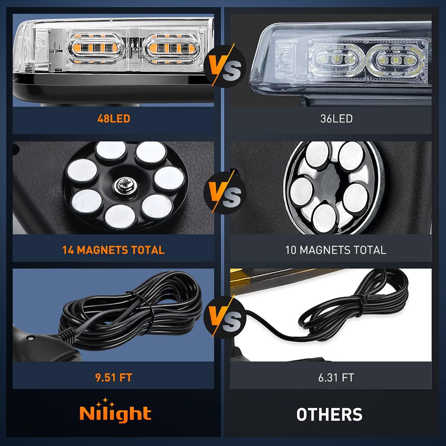 Nilight 12 Inch Roof Top Strobe Lights 48LED Hazard Light Emergency Safety Warning LED Flashing Bar Magnetic Mount 12V 24V Cars Trucks Tractors Snow Plows Construction Vehicles(Amber)