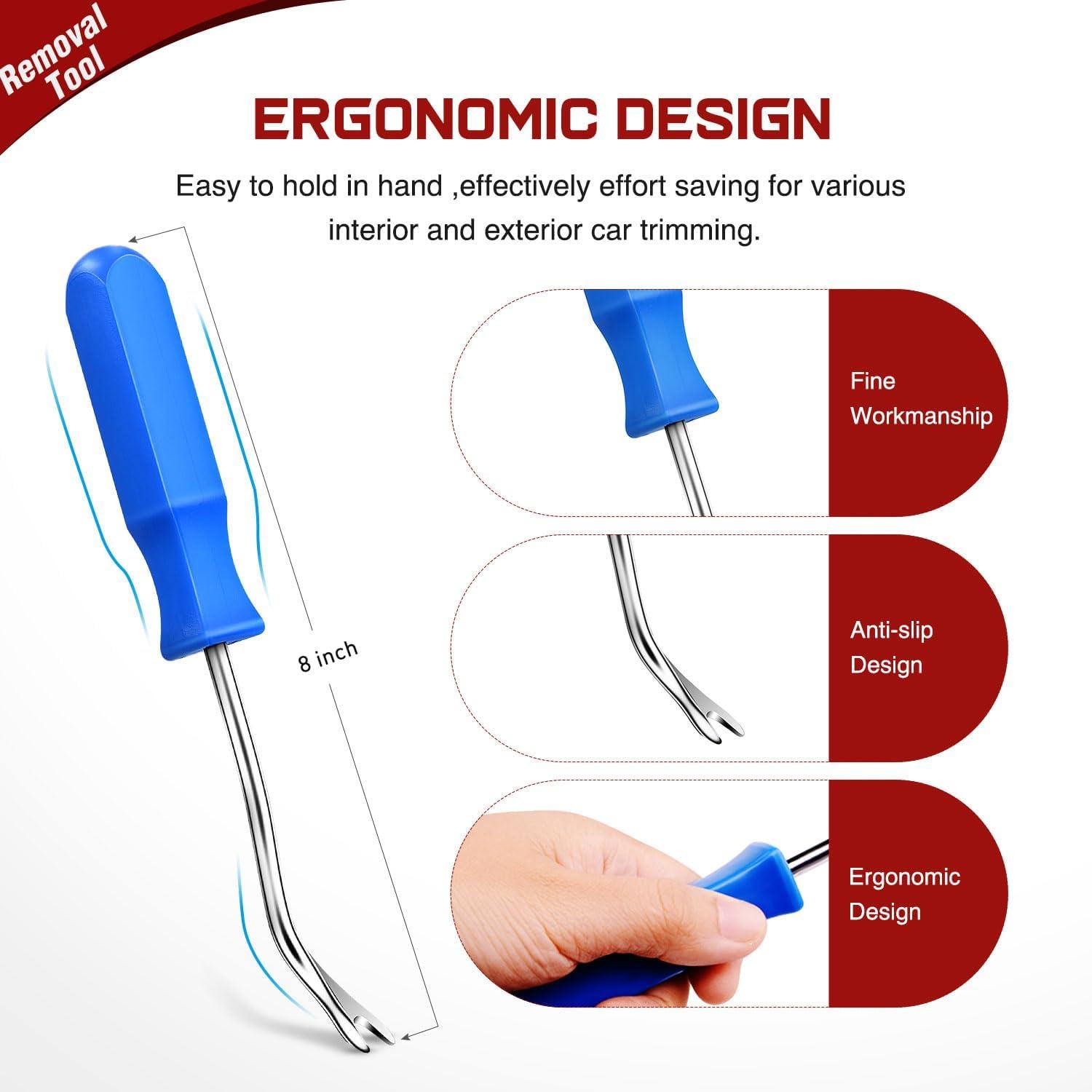 【BONUS FASTENER REMOVER】- The fastener remover is corrosion-resistant and is made of chrome plated carbon steel. The ergonomic strong handle allows safe removal of metal or plastic clips