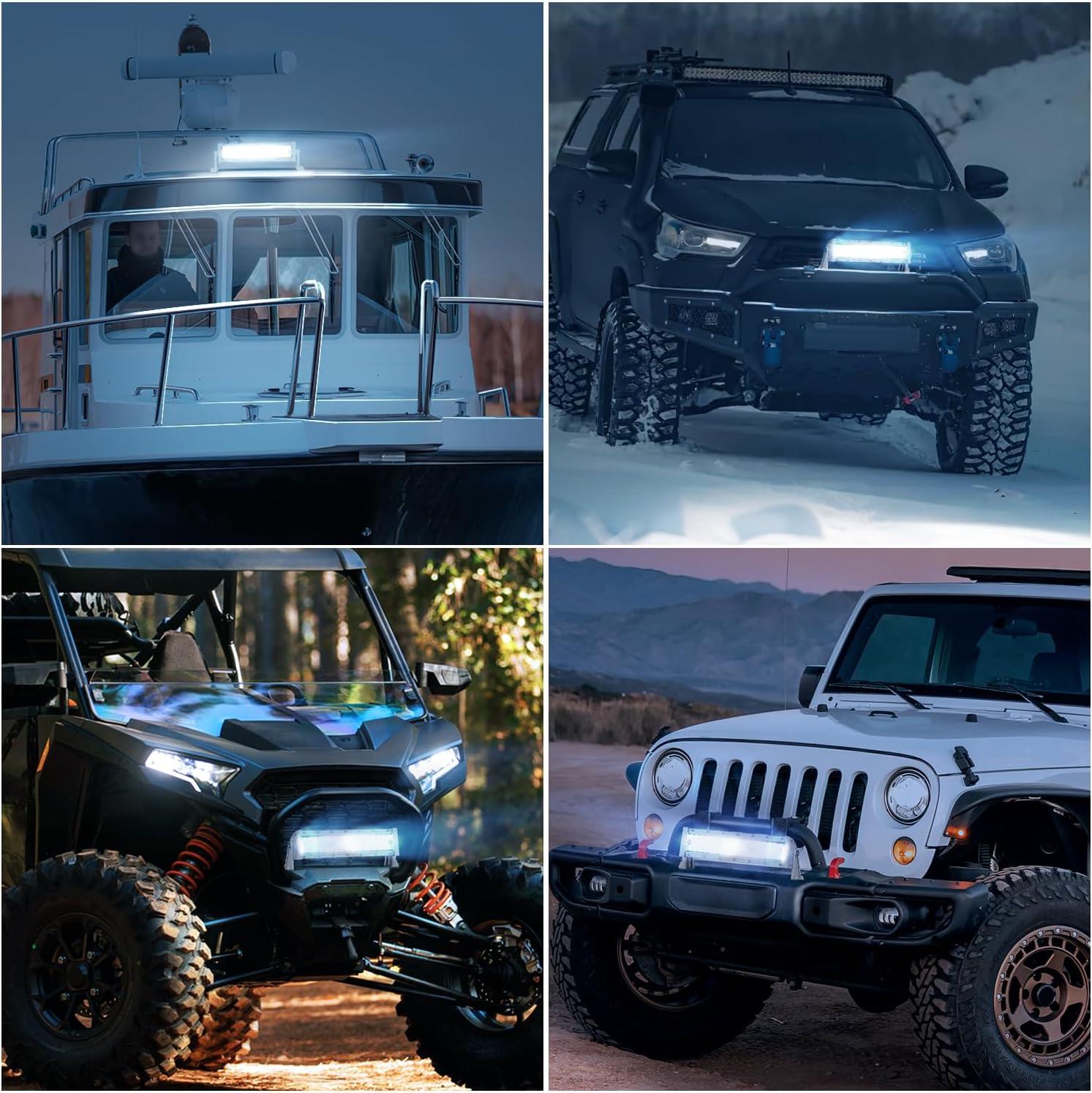 Spot Flood Combo Beam: Powerful 72W LED light bar, high-quality Led chips and clear PC lens, this LED pod emits 6000k pure white light, effectively light up the dark road during night Appropriate