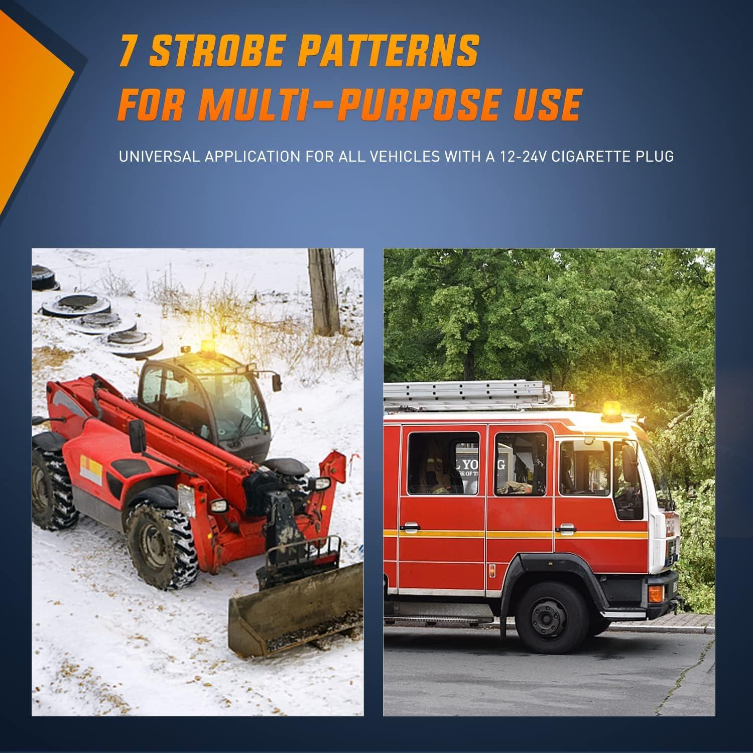 Wide Application:Our amber white 18led light suitable for all those vehicles equipped with a 12-24V power socket. Great for emergency vehicles, postal service, construction vehicles, trucks, forklifts, tractors,golf cars, cars, school bus and safety warning etc.Package includes:1×18led magnetic beacon light ,1×car charger ,1×home charger