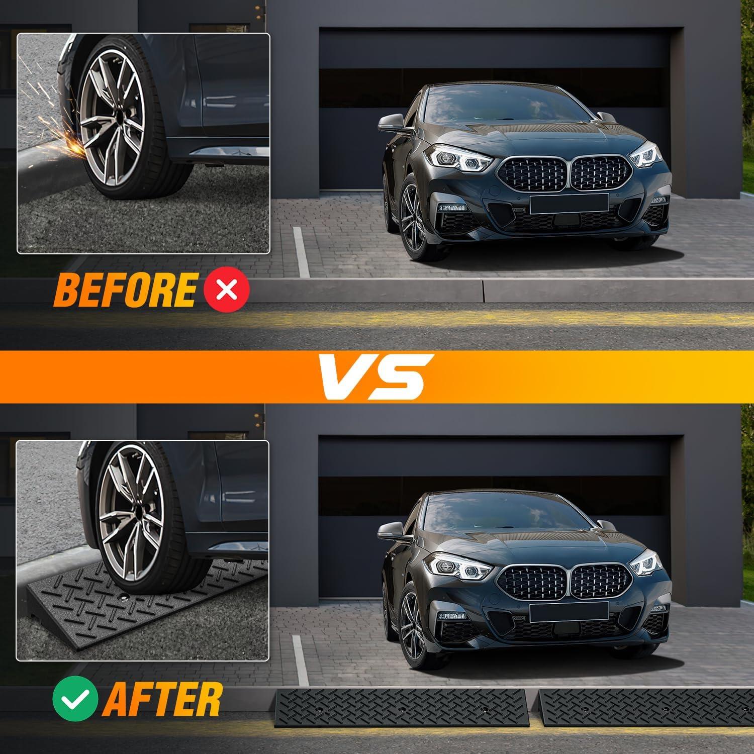 Widely Use: These rubber curb ramps for driveway help easily navigate thresholds for cars, bicycles, wheelchairs, trailers, lawn mowers and pets. Perfect for driveways, garages, loading docks, warehouses, barns and doorway transitions