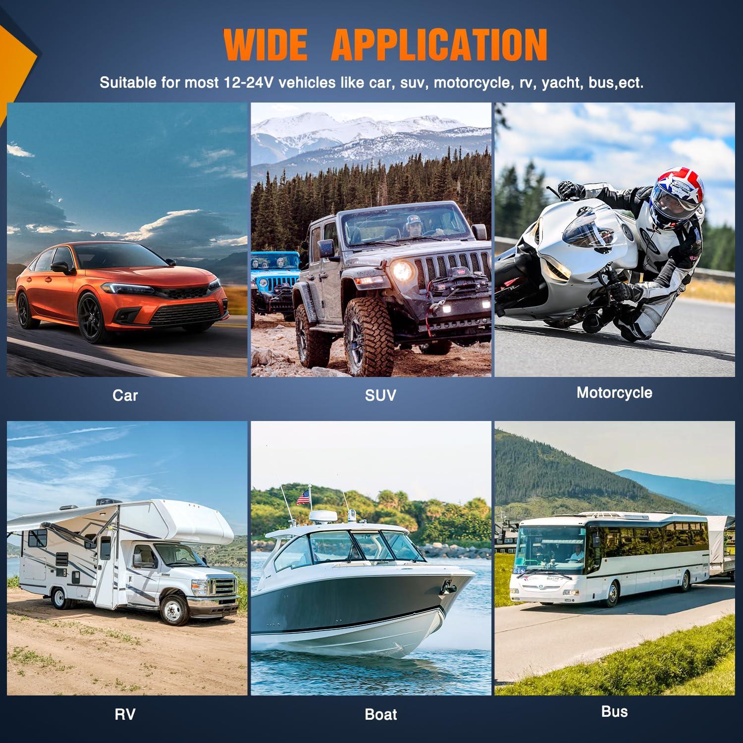 USB Charger and Voltmeter: PD Type C and QC 3.0 USB Charger enable you charge two devices simultaneously at full speed. It works for all USB-powered devices. Makes the charger 40% faster than conventional chargers; The voltmeter is built in the center of the USB charger, clearly shows the current readings of working volts, easily notice the voltage condition of the vehicles.