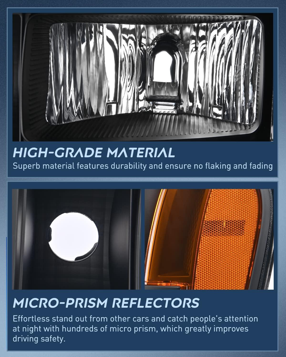 Safe Drive: Our 2002 2003 2004 2005 Ram 1500 2500 3500 headlights provide clearer and longer vision for driver to see the deer, wild animals, falling rocks or other obstacles at night in advance to reduce the possibility of danger.