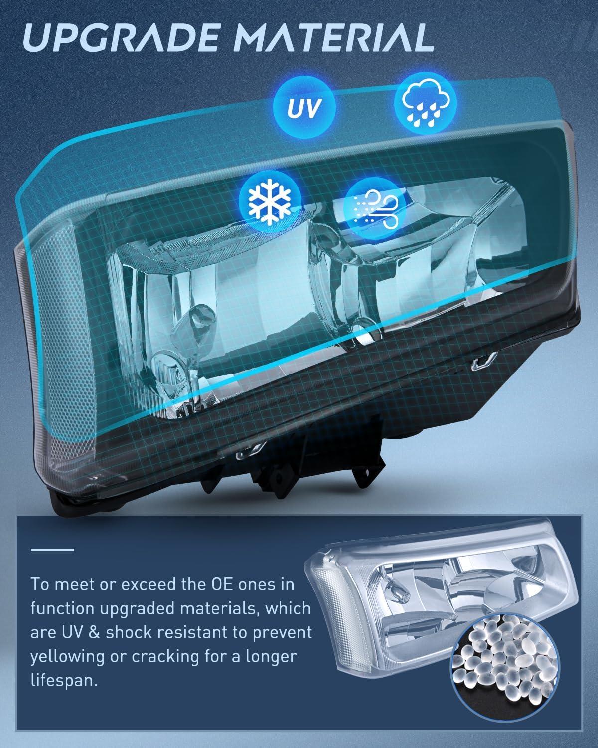 DOT Compliance: Our 2002 2003 2004 2005 Ram 1500 2500 3500 headlights are DOT & SAE compliant to ensure driving safety for you and oncoming driver. Also, the adjusting screw can assist you to adjust the beam level and make it a perfect fit.