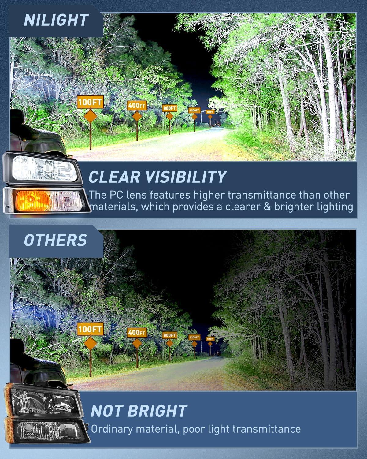 Nilight Headlight Assembly for 2003 2004 2005 2006 Chevy Silverado Avalanche 1500 1500HD 2500 2500HD 3500 Chevrolet Pickup Replacement Headlamp Housing Bumper Lamp Set(Black Housing + Clear Reflector)