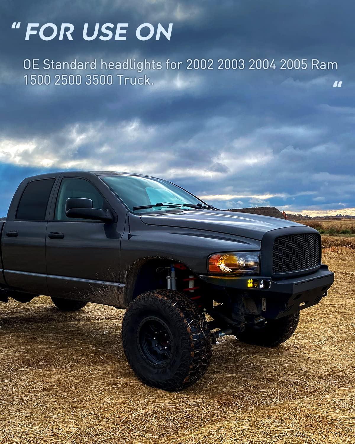 15 Mins Installation: Plug-N-Play Design, No Modification or Drilling Needed. OE Standard headlights for 2002 2003 2004 2005 Ram 1500 2500 3500 Truck.