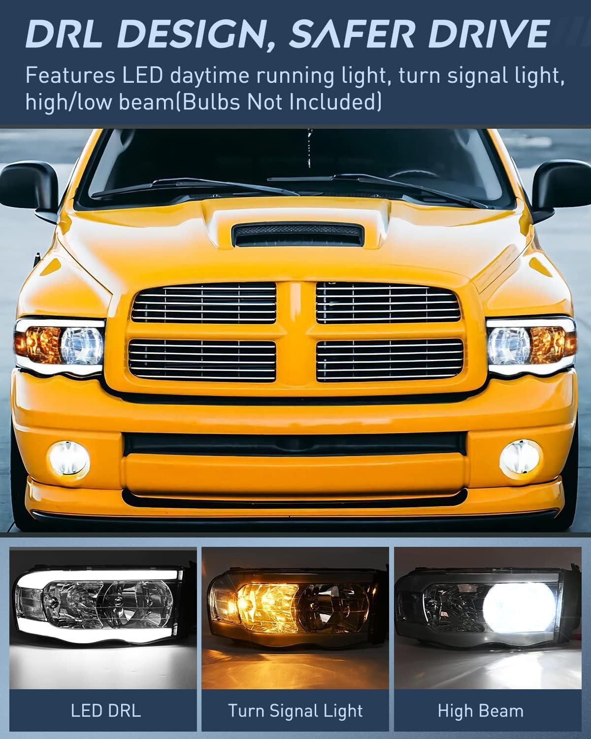 15 Mins Installation: Plug-N-Play Design, No Modification or Drilling Needed. OE Standard headlights for 2002 2003 2004 2005 Ram 1500 2500 3500 Truck.