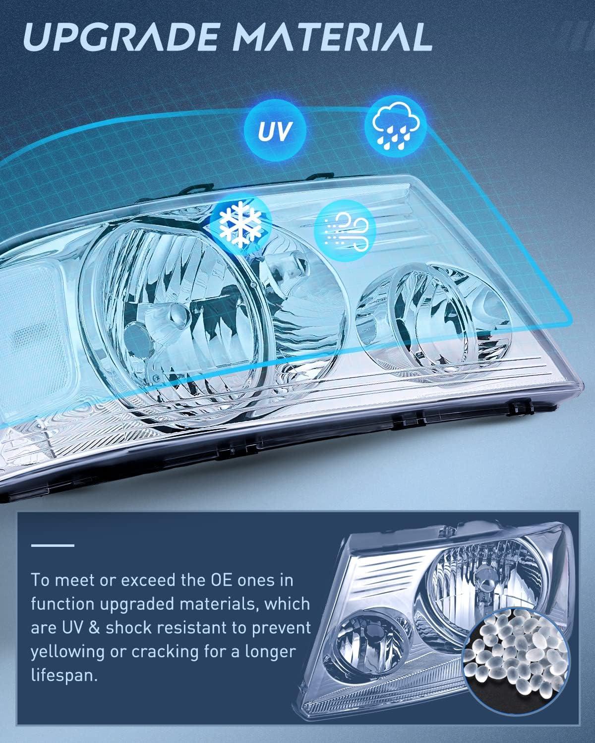 Nilight Headlight Assembly for 2004 2005 2006 2007 2008 Ford F150 Pickup /2006-2008 Lincoln Mark LT Passenger Driver Side Black Housing Clear Reflector Lens Headlamp Replacement(Chrome Housing+ Clear Reflector)