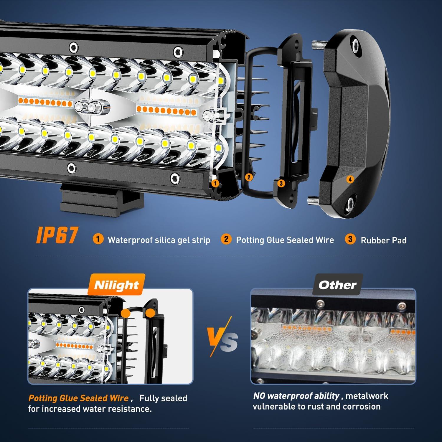 Nilight 20Inch Off-Road LED Light Bar, 420W 3 Lighting Modes (White/Amber/White&Amber) Driving Fog Light Spot Flood Lights with 16AWG Wiring Harness for Truck Car ATV SUV Jeep Boat(Amber White 3 Modes)