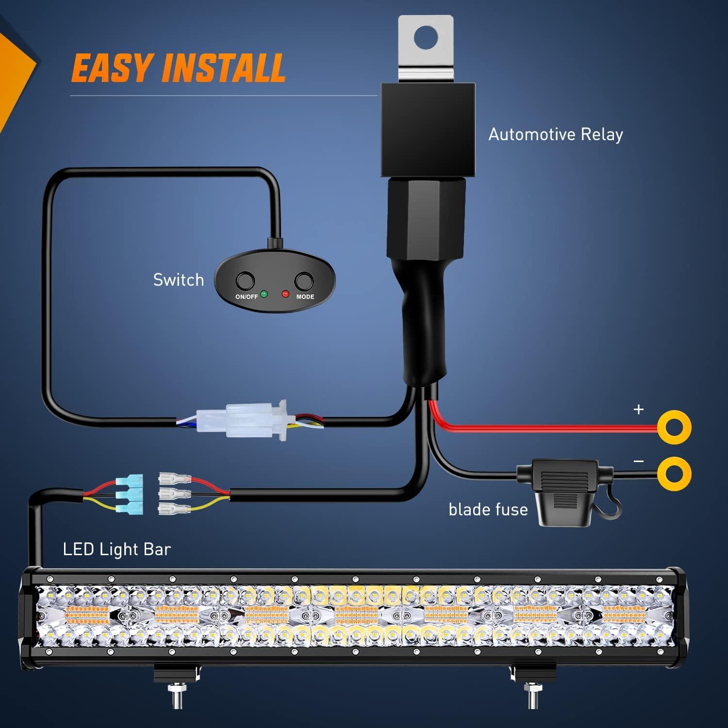 Upgraded Dual Control Rocker Switch: Comes with an 18AWG kit (relay, fuse, wires included—no extra parts needed). The newly upgraded dual-control power rocker switch features two button colors, making it easier for you to control LED lights at night
