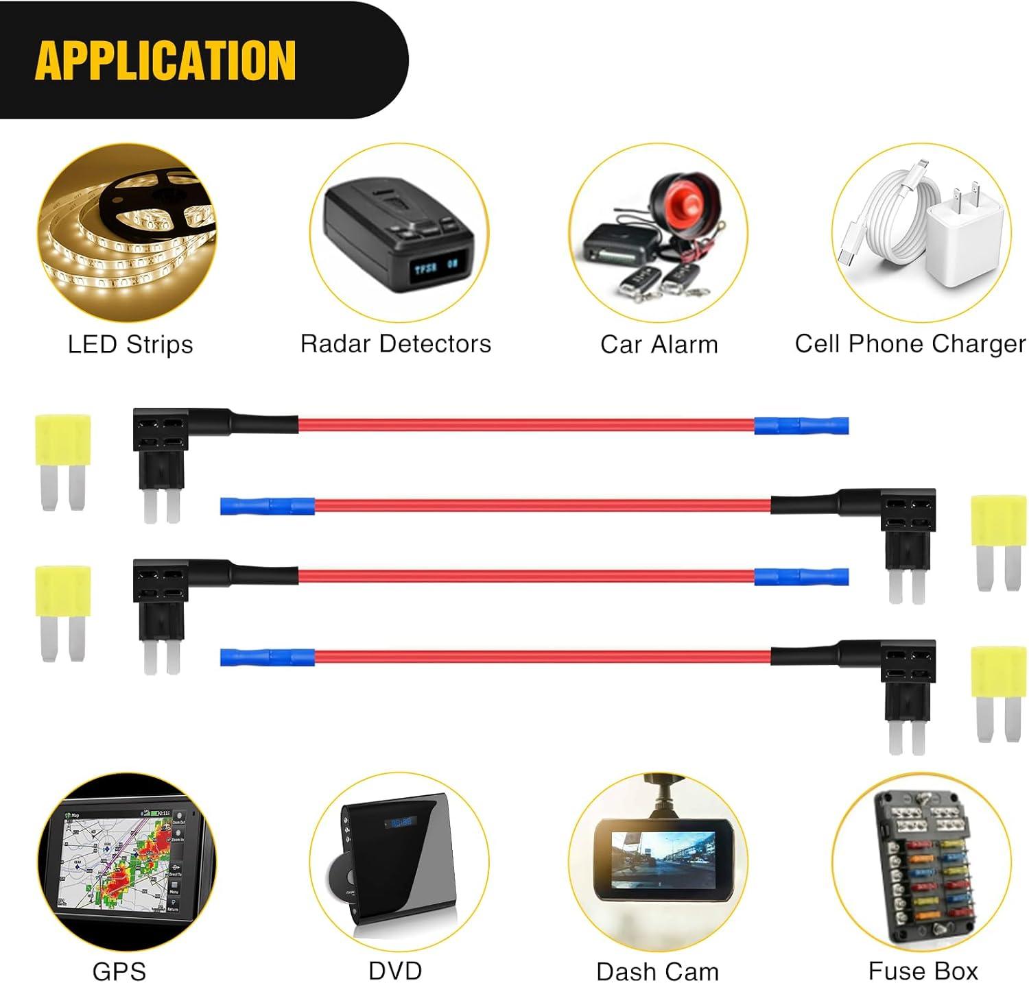Great compatibility: Automotive and non-automotive use for Cars, Trucks, SUVs, ATVs, UTVs, Campers RVs,Motorcycles,Boats,snowmobiles,and most general DC applications etc,covering such components as radio, light,etc. Use when hardwiring or adding LED strips, dash cams or other electronic devices that require direct wiring into the fuse box
