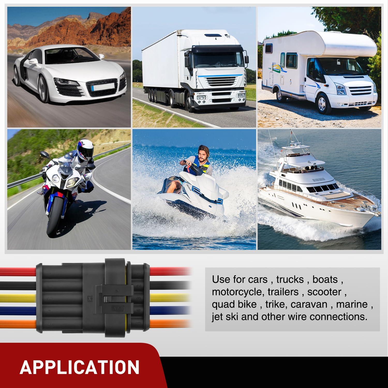 Application: Widely used for Motorcycles, Scooters, Cars, Trucks, Quad bikes, Trikes, Caravans, Marine Boats RVs etc. Great for connecting LED light bar, LED strips, LED wall-washers, LED underground light, LED belt light, curtain light, twinkle light and so on.