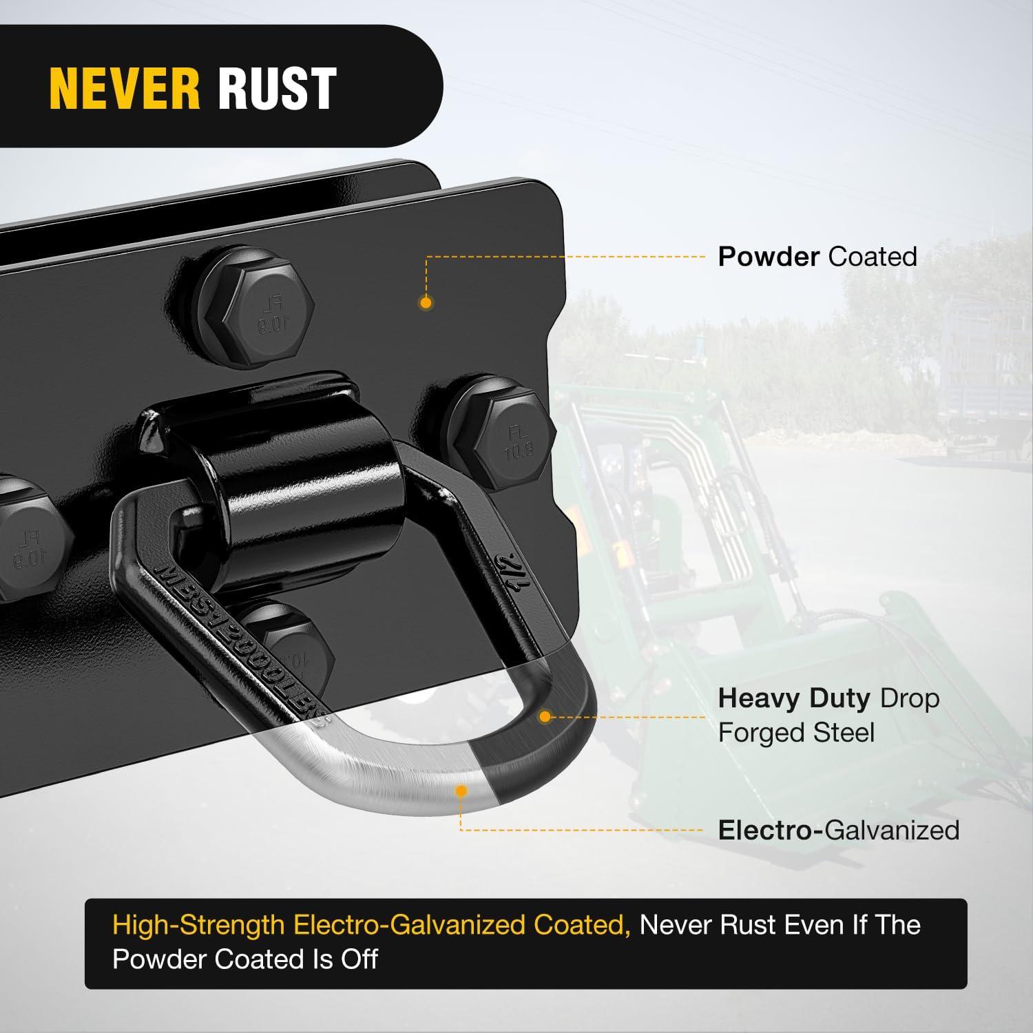 【Easy Installation】-1/2″ D Rings Welded to the Backing Plate coming with complete hardware for Installation, you can fix the 1/2″ D Rings on your machine with grade 10.9 locking bolts and lock anti-skid nuts easily