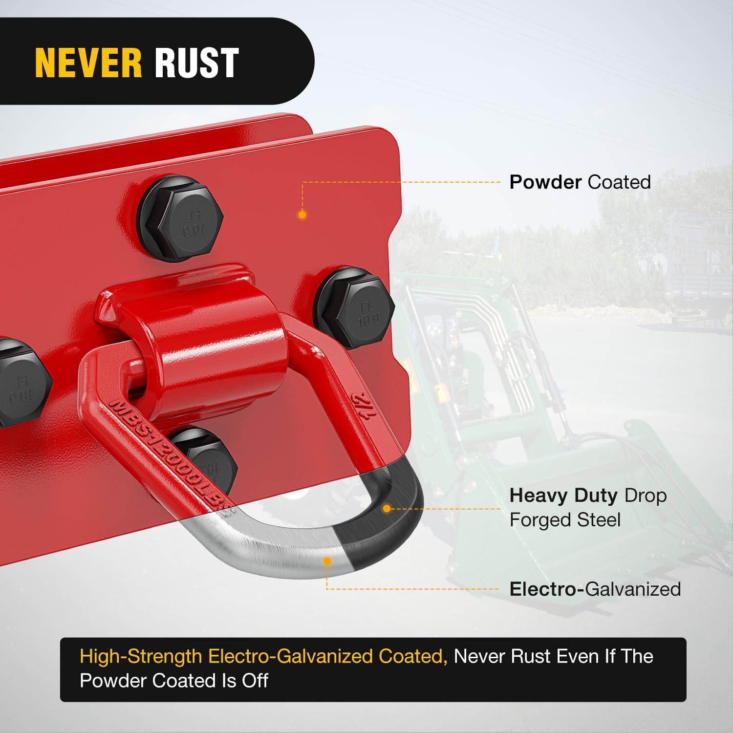 【Application】- The 1/2″ D Rings Welded to the Backing Plate, fit for almost agricultural vehicle, such as John-Deere Truck, Tractor Bucket, Trailer, Lawn Mowers, RV, UTV, ATV; Mounted on Tractor Bucket, used with chains, straps, ropes, and Ratchet Binders etc. It can also Used As Shackle, is a Good Tractor Bucket Attachments
