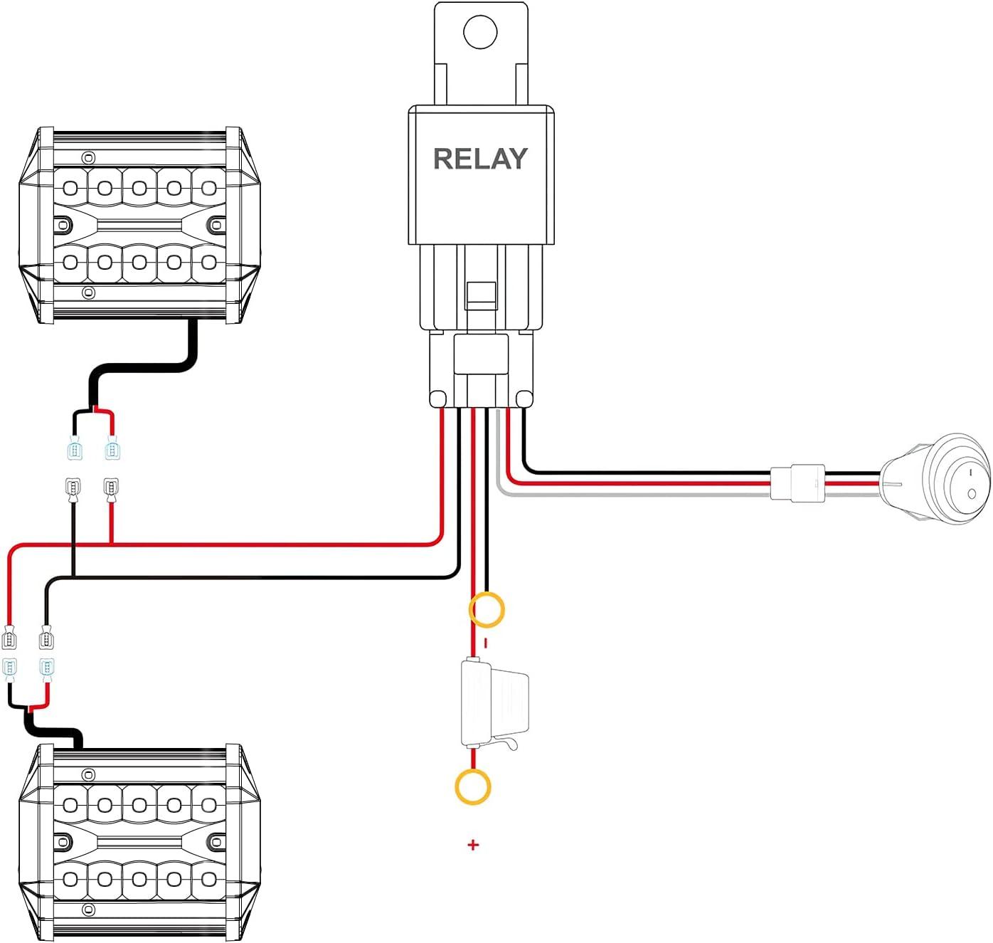 12ft wiring harness: more than 12ft of wiring from the switch to lights, has also been extendable, run the harness to your desired lighting location,power relay and inline blade fuse ACT as the first Line of defense against overcurrent and short circuit