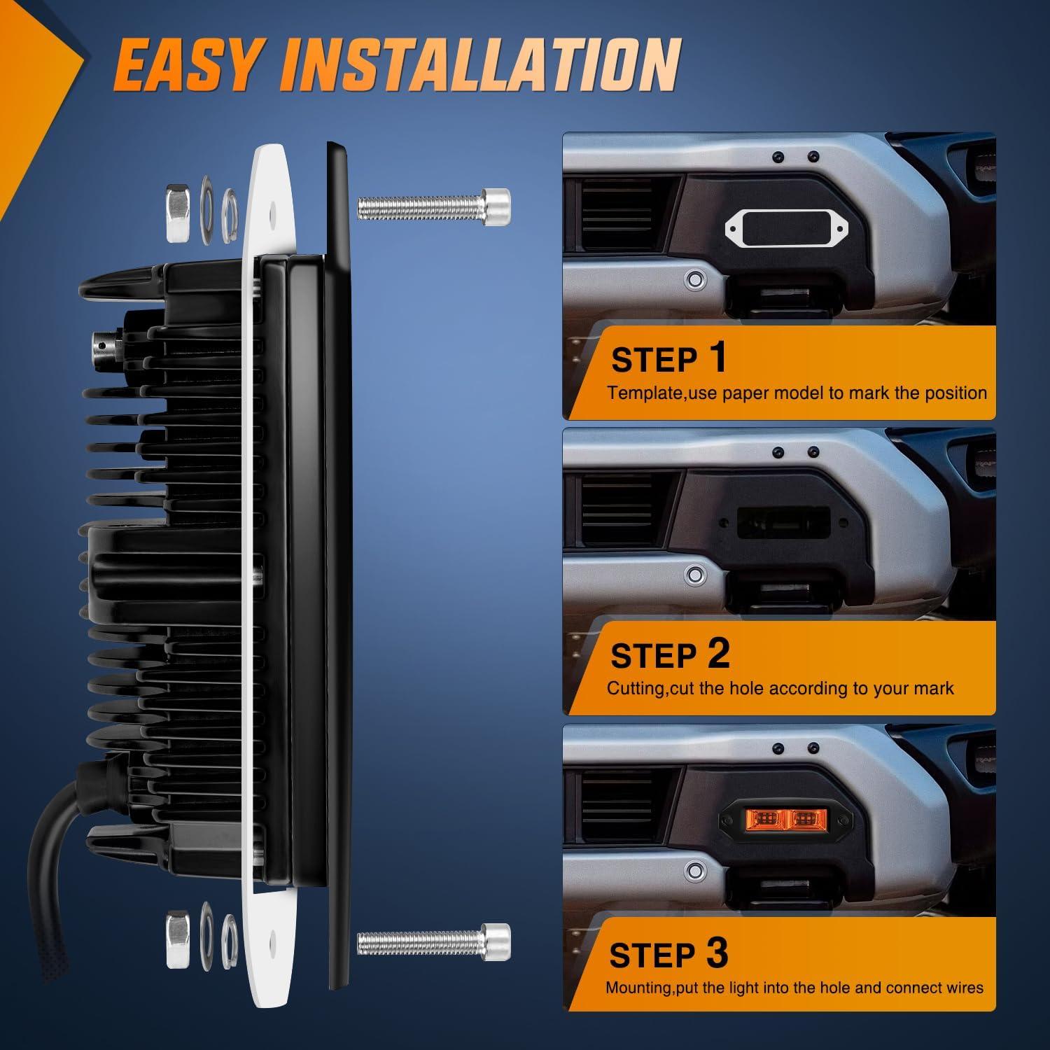 FLUSH MOUNT, LOW WINDAGE: Come with a rubber pad for easy opening and shockproof Flush Mount, better reduce wind drags, looks like they're supposed to be on the OEM position, pretty decent lights for backup reverse, running light, auxiliary lamp, parking light, garden light and more