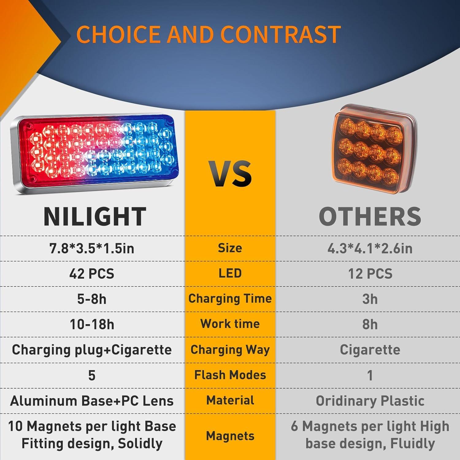 Super Bright And High Visiblity:Nilight 2Pcs Wireless Magnetic Strobe lights are consists of 42pcs high intensity LED chips, provided maximum illuminate coverage and be visible from greater distance. Visible in daylight, midnight, rainy, foggy or snow days.