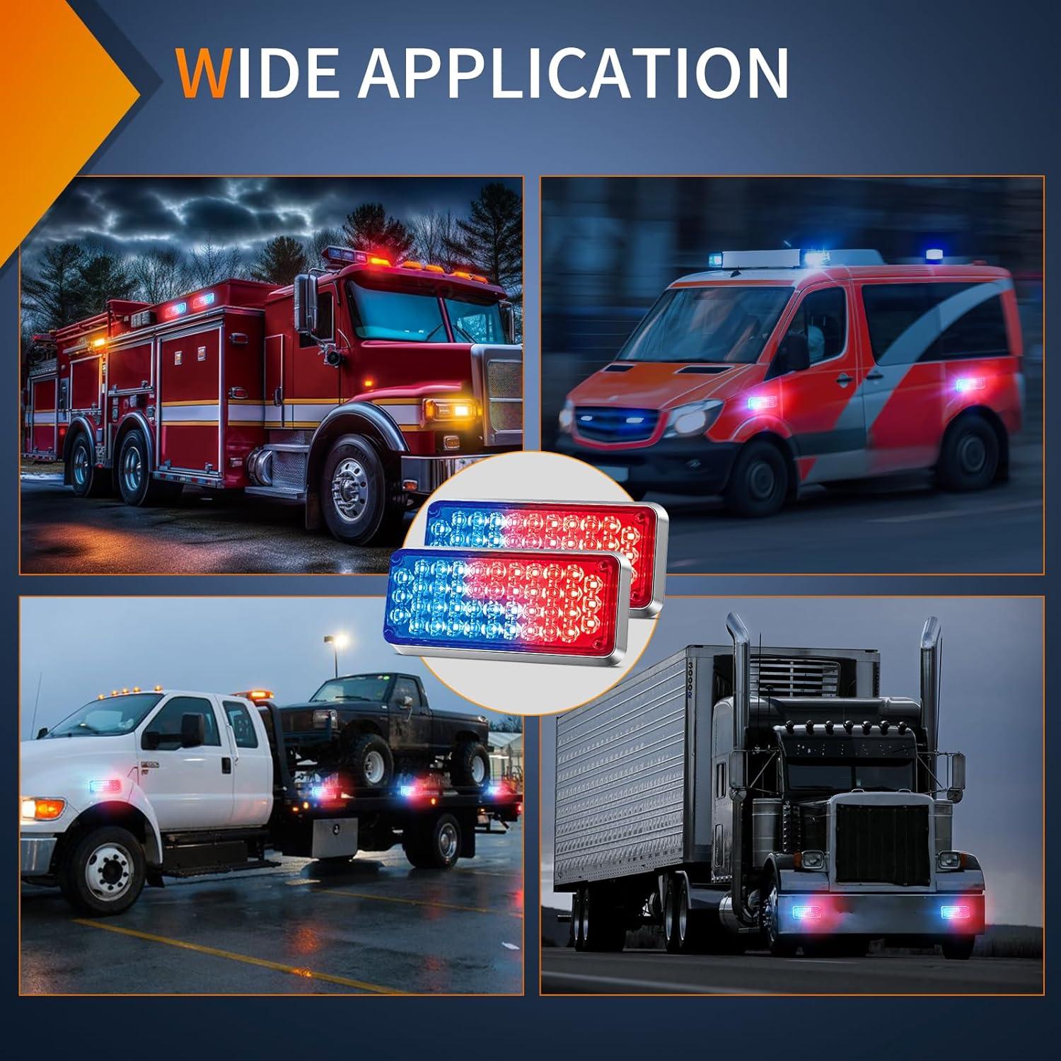 Applications: This strobe light is suitable for any 12-24V vehicle such as trucks, construction vehicles, tractors, snowplows, SUVs, Campers, Trailers etc. It can be installed on any surface of the car, such as the side of the body, the roof and the rear of the car.