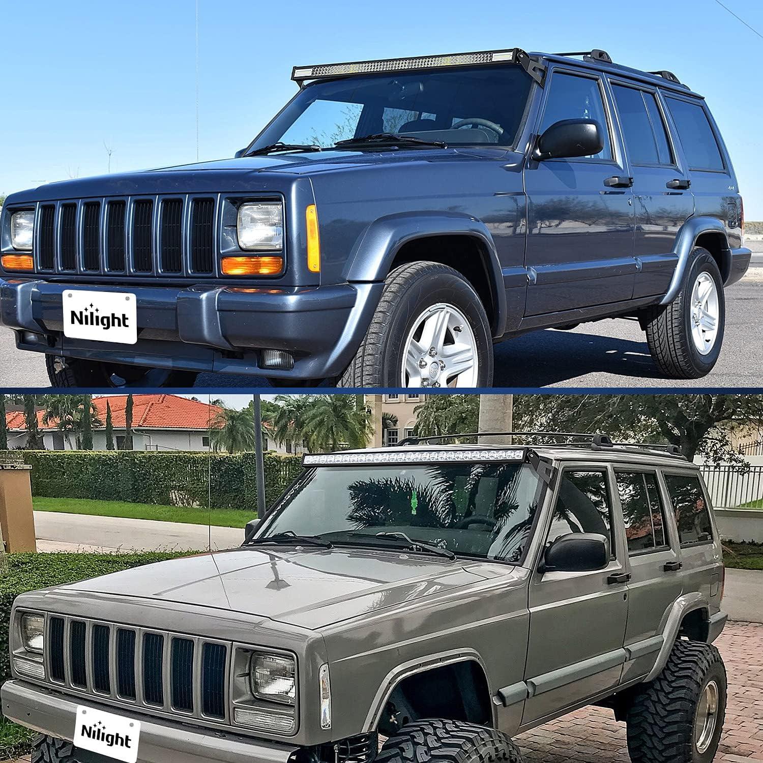 Nilight 2PCS 52 inch Curved LED Light Bar Bracket at Upper Windshield Roof Cab for 1984-2001 Jeep Cherokee XJ & 1986-1992 Comanche MJ(Jeep 1984-2001 /52″ Light Bracket)