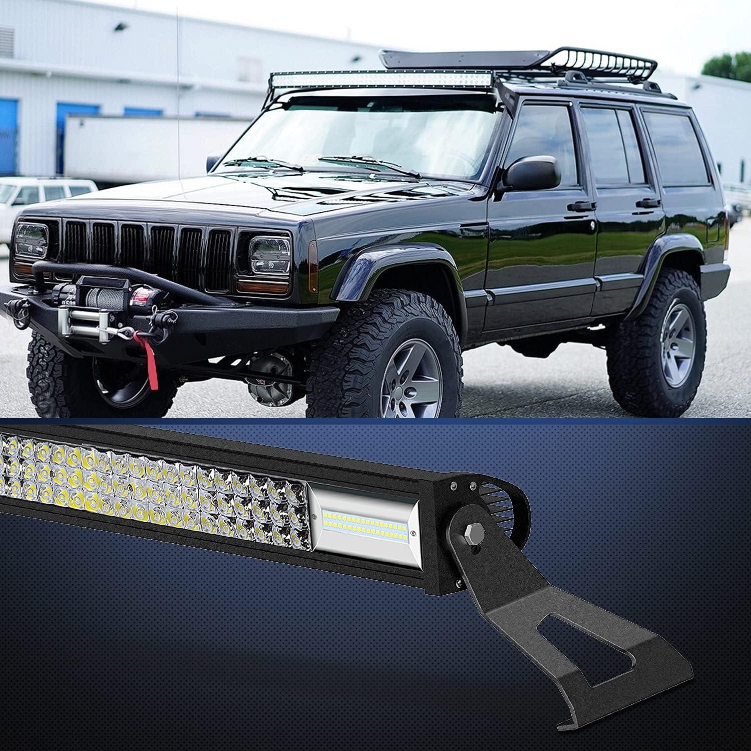 Fitment: Only compatible with 52 inch curved light bar mounts at the roof cab/upper windshield of 1984-2001 Cherokee XJ, 1986-1992 Comanche MJ