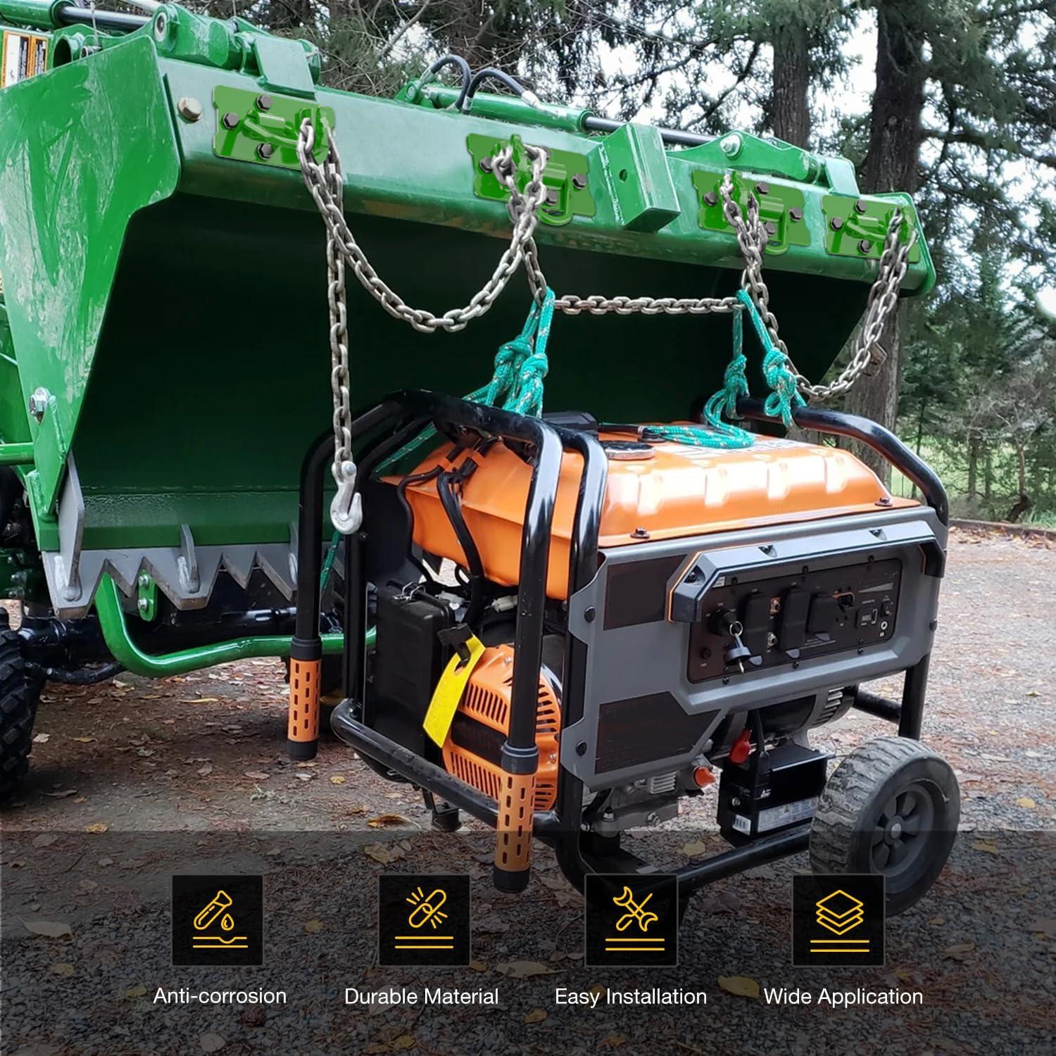 【Application】-Tractor Bucket Hooks fit for almost agricultural vehicle, such as John-Deere Truck, Tractor Bucket, Lawn Mowers, RV, UTV, ATV; Mounted on Tractor Bucket, used with chains, straps, ropes, and Ratchet Binders etc. It can also Used As Tow Hooks, is a Good Tractor Bucket Attachments.