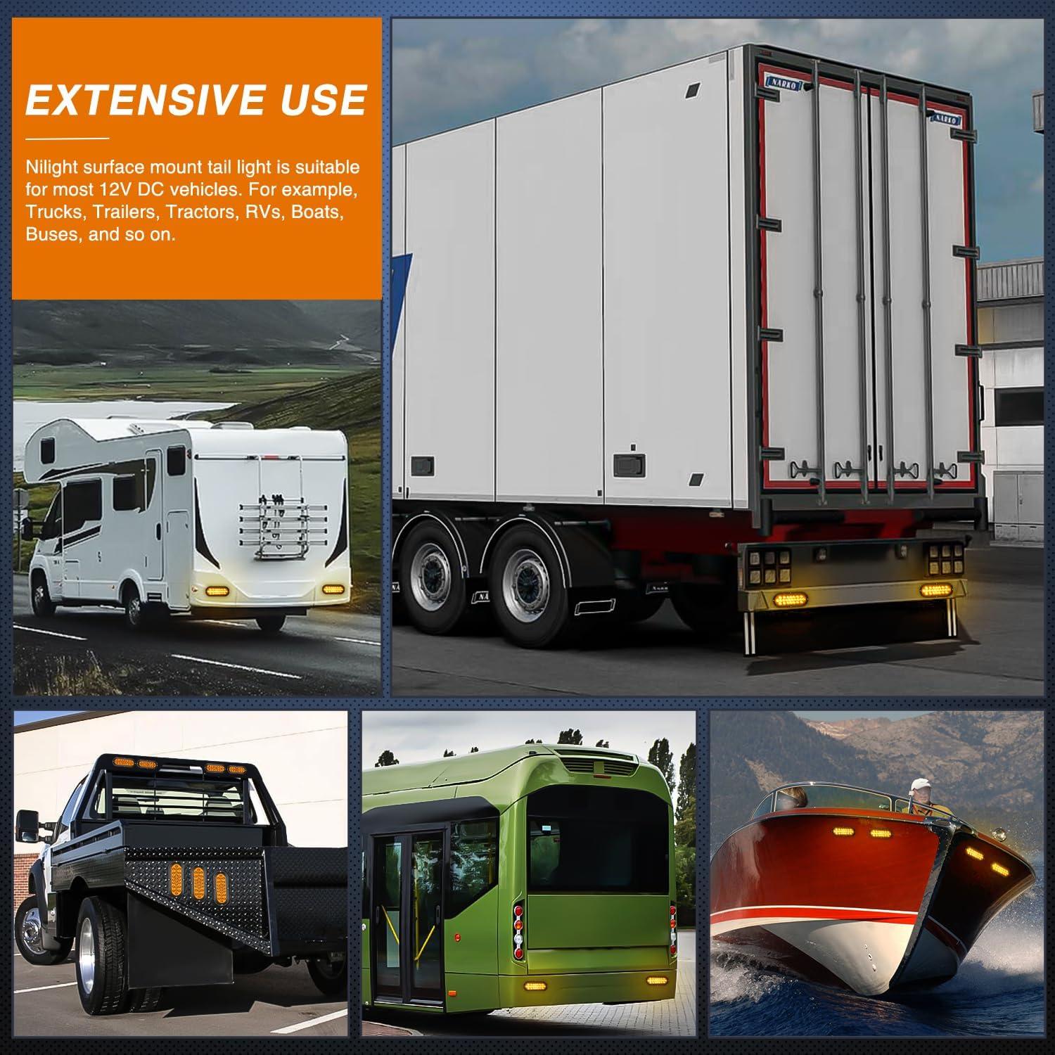 Nilight 2PCS Trailer Tail Light Kit 40 LED Running Brake Turn Signals Reverse lights Waterproof for 10-30V Truck RV UTV Camper Van Boat(Amber 24LED Lights Screws 2Pcs)