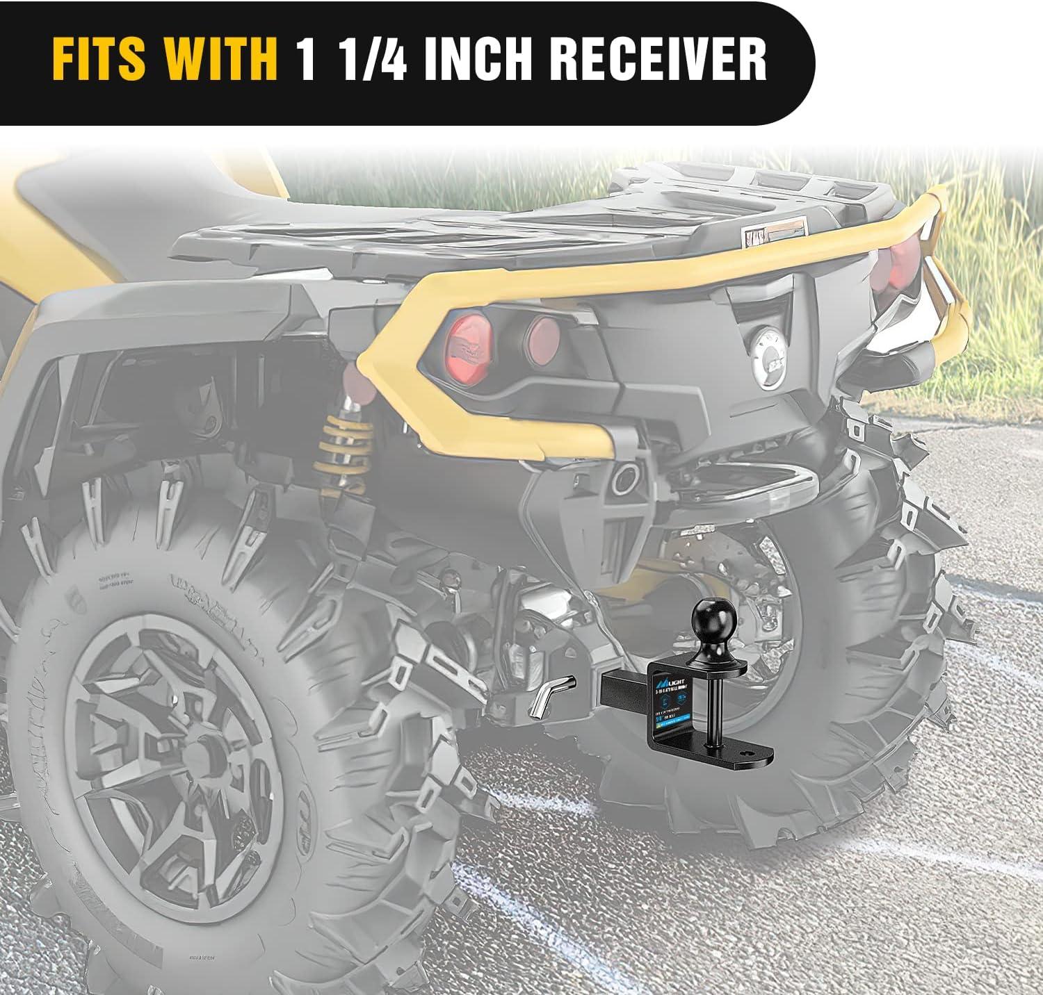 Nilight 3 in 1 ATV UTV Multi Hitch Mount with 1-7/8 inch Ball Hitch Rated 2000 LBS Fits 1-1/4 Inch Receiver Winch Strap Loop Rated 5000 LBS(1.25″ Hitch Receiver with 2″ Ball)