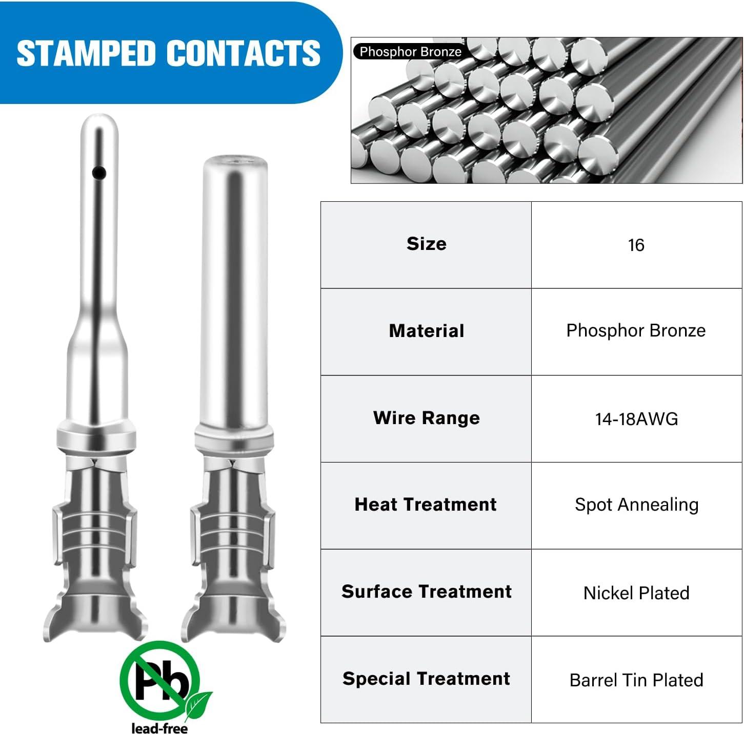 Package Includes: 3 sets 3-pin connectors(3 pcs male plugs and 3 pcs female plugs), 9 pairs solid terminals(9 pcs pins and 9 pcs sockets), 3 pcs seal plugs.