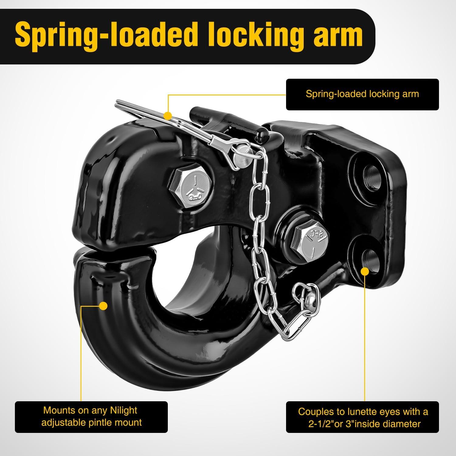 【Easy to Install】- To install the 3-Position Pintle Hook Mount on your vehicle, simply insert the shank into your vehicle's 2-inch hitch receiver. The rounded shank and included hitch pin make installation easy. 2 Years Warranty Honored by Nilight