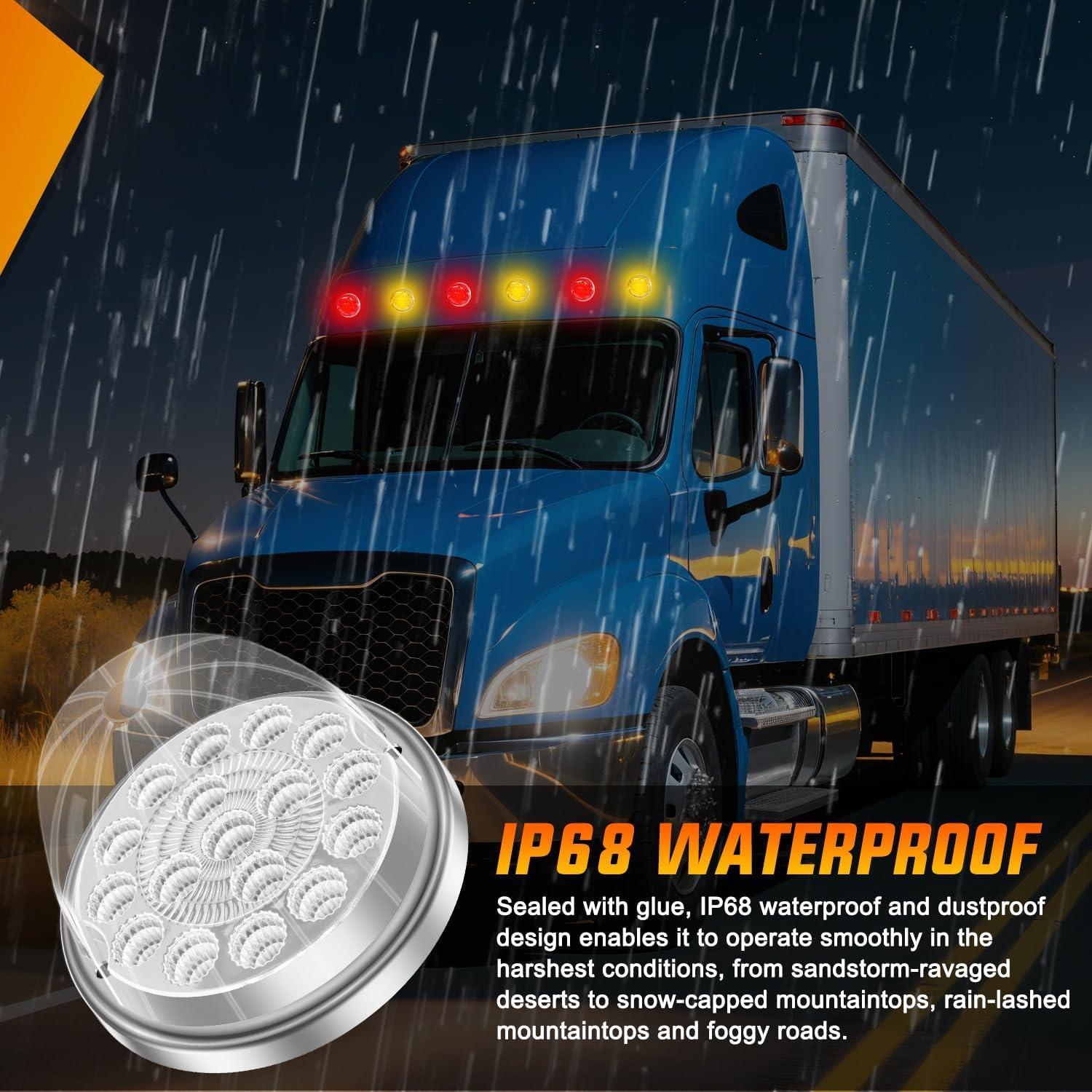 IP68 Waterproof and Dustproof: The lamp body adopts epoxy resin full sealing technology, which can completely resist rain, dust and snow or other harsh environments, ensure long-term outdoor use stability, and provide reliable and safe identification for vehicles
