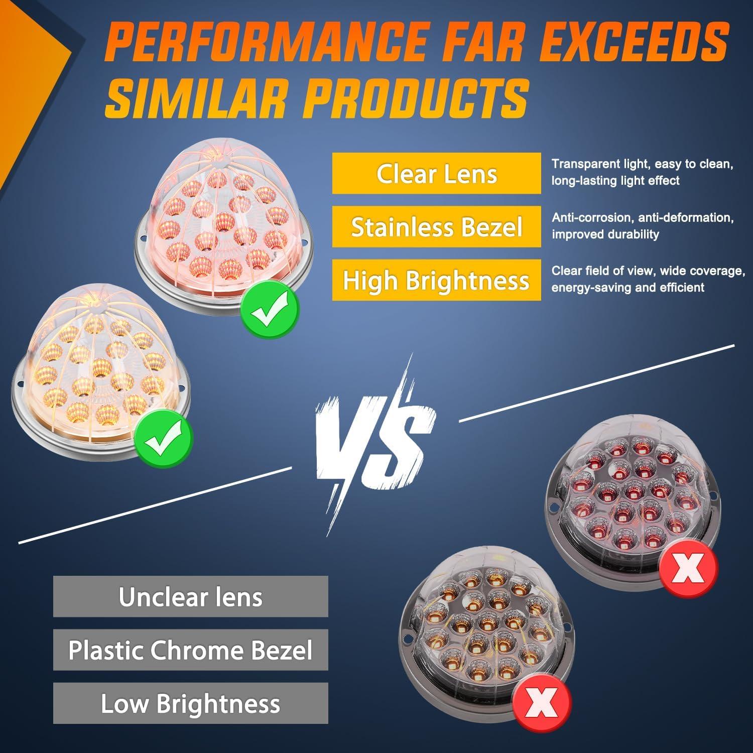 Nilight 34 LED Dual Face Watermelon Light 2PCS Amber and Red Clear Lens Auxiliary Side Marker Clearance Turn signal Brake Pedestal Lights IP68 Waterproof for Trailer Semi Trucks Pickup Camper RV(Red Amber)