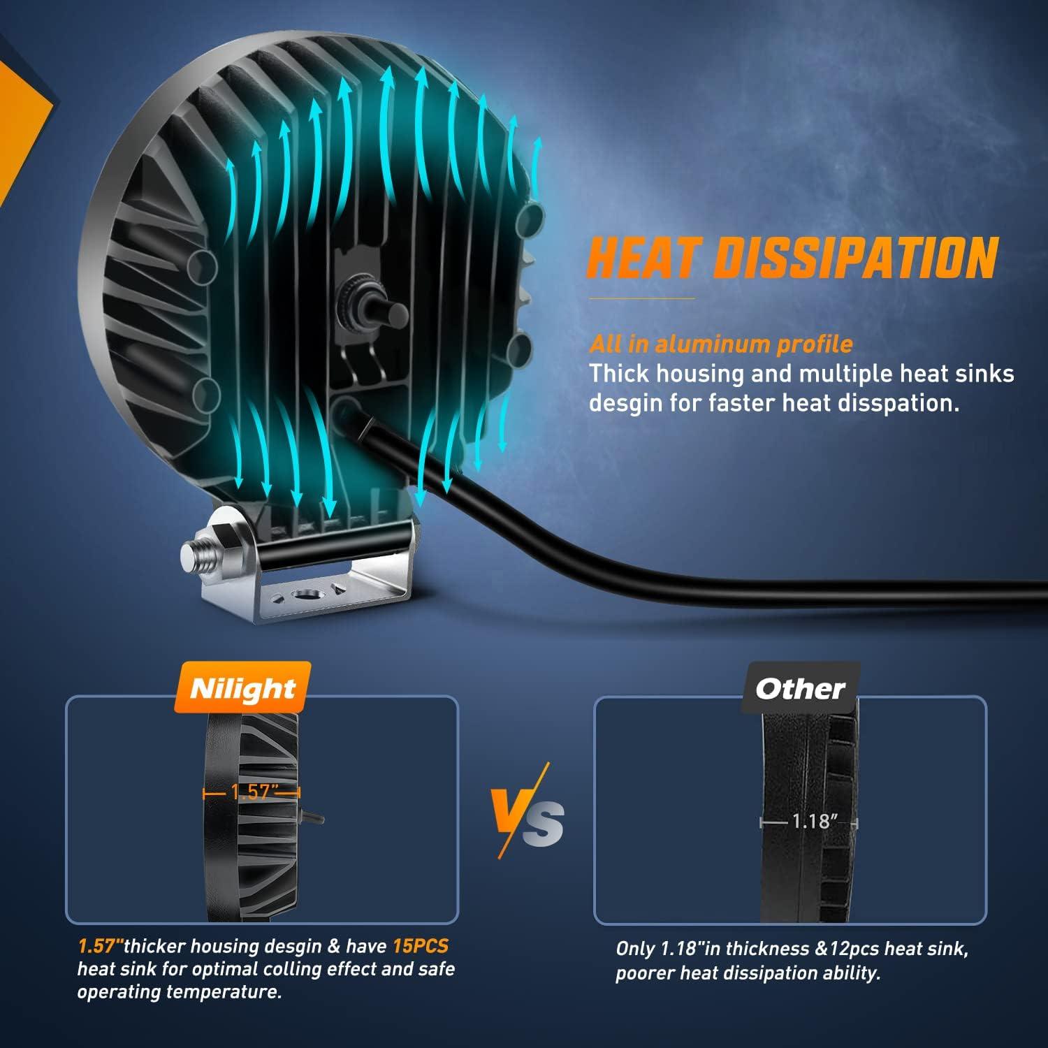 Nilight 2PCS 4.3 Inch Round LED Light Pods