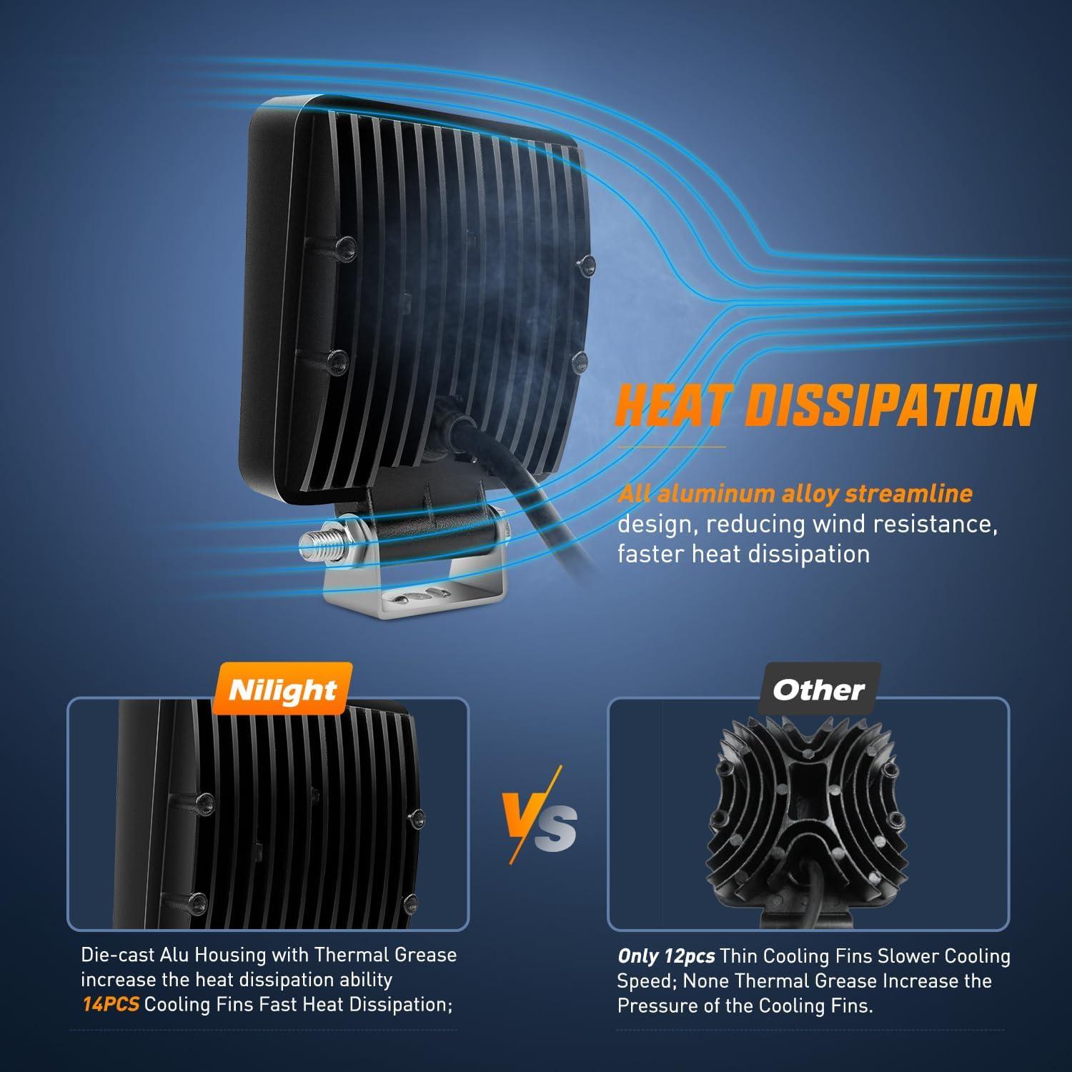 Nilight 4.3 Inch Round Utility LED Work Light W/Integrated Toggle Switch, 2PCS 72W 5760LM 150° Flood Lamp for Offroad Heavy Equipment Vehicles Truck Tractor Golf cart Boat ATV UTV(2Pcs 27W Spot Lights)