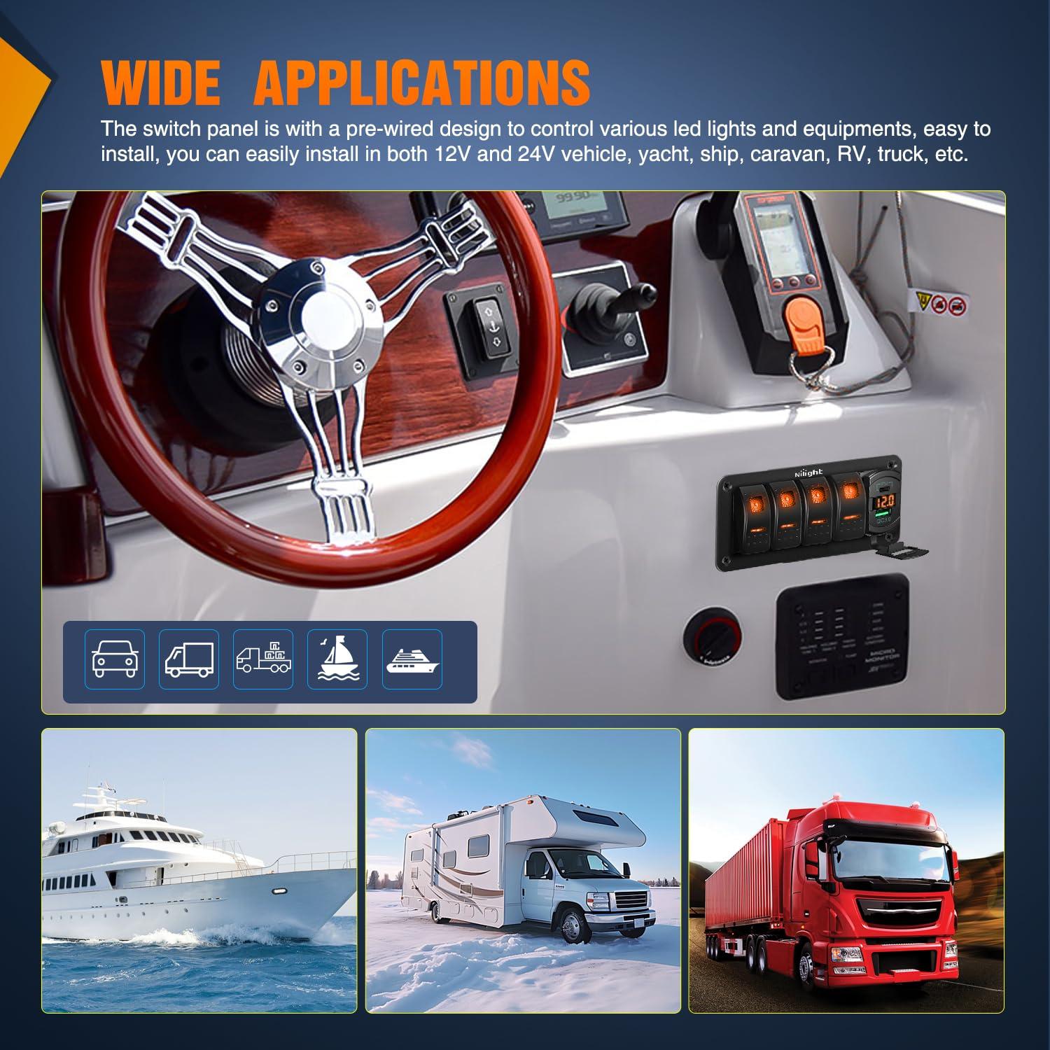 Multi-Function designed: This switch box is integrated with 4×20 amps Rocker switches rated at 12VDC and PD Type C& QC 3.0 USB charger with LED voltmeter. Suitable for most 12V-24V DC cars, UTVs/ATVs, trucks, trailers, RVs, caravans, buses, marine boats, yachts etc.